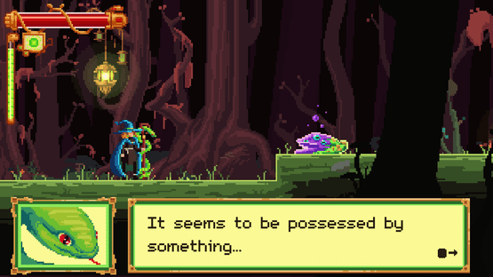 The action-packed tale of the exiled SNAKEWITCH. Swing and strike your way through cursed areas, battling monsters and freeing possessed creatures along the way. With your snake companion, break into the Academy and discover the true reason that the accursed SNAKEWITCH was banished.