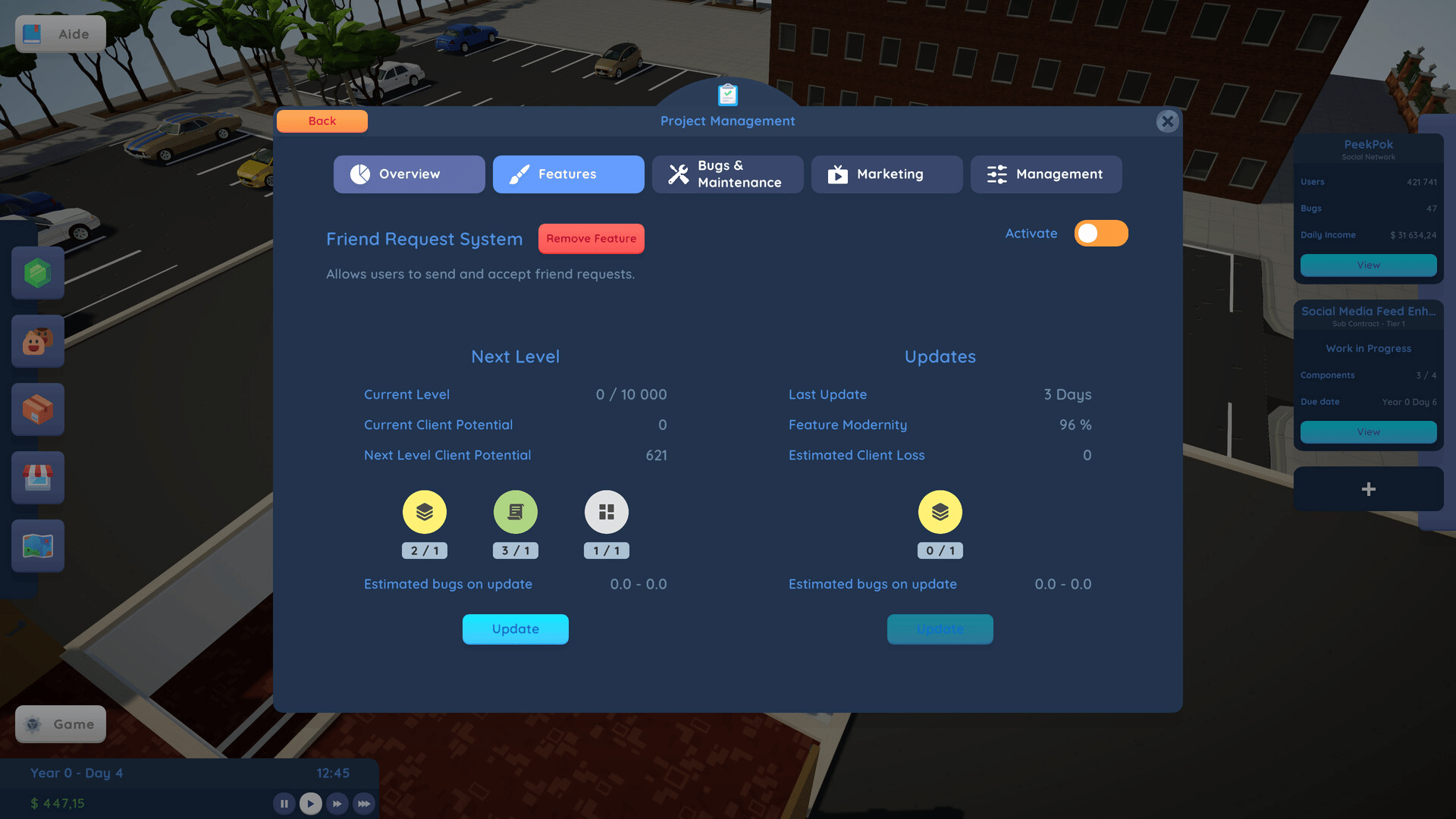 Build your own software empire from scratch. Manage projects, recruit staff, design components, and grow from a garage startup to a tech giant. Create SaaS platforms, sell software, or fulfill contracts. Balance quality, deadlines, and innovation in this relaxing yet deep business simulation game.