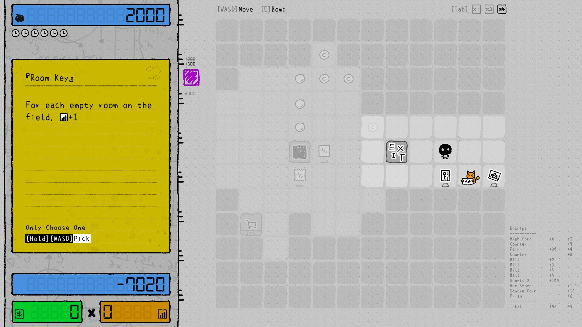 《PayGame》is a black-and-white hand-drawn dungeon exploration game.You must race against time through randomly generated rooms, combining items and bills to pay massive amounts of money in order to stay alive.Each run offers a brand-new challenge and a completely different experience
