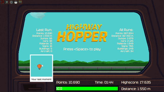 Jump over guardrails, dodge obstacles, and chase the high score - welcome to Highway Hopper!