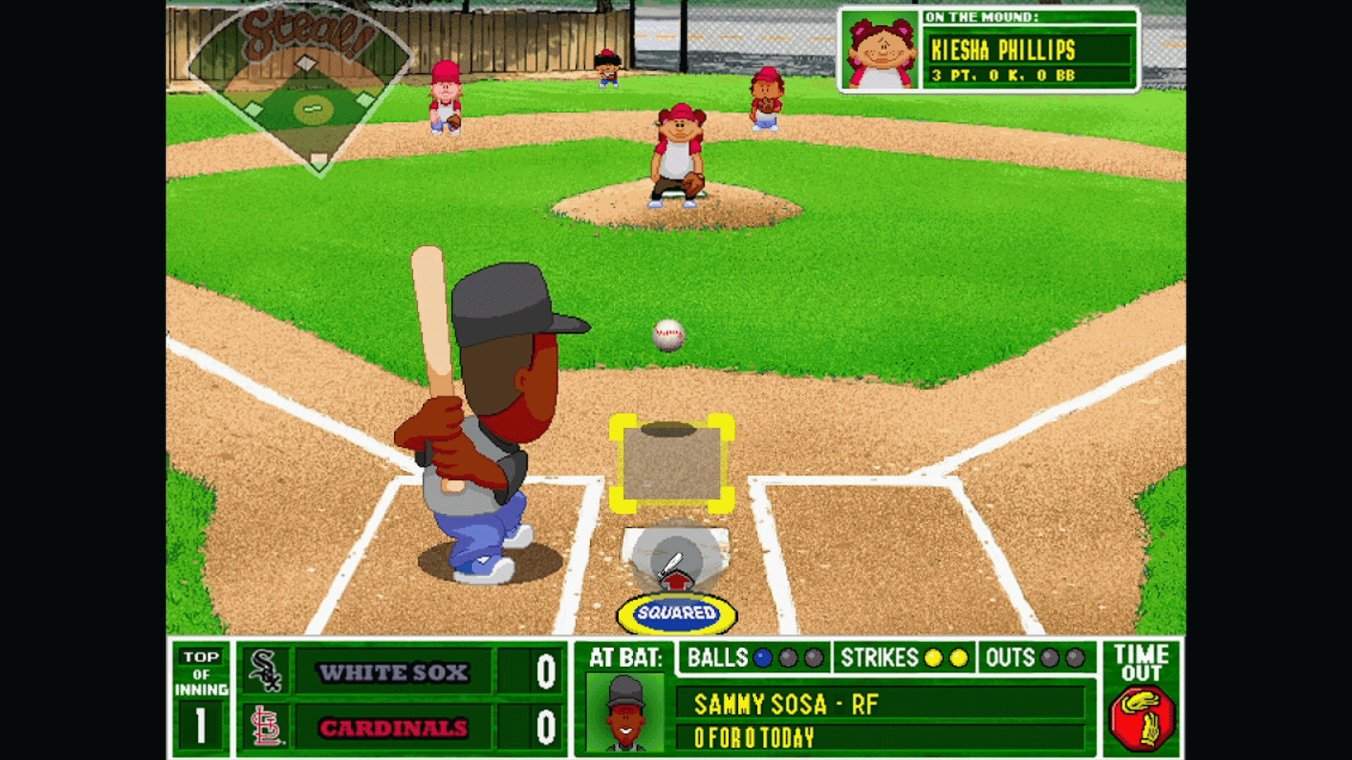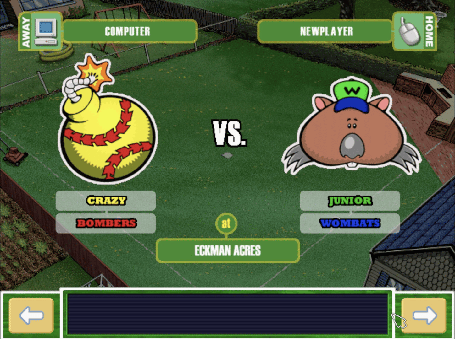 Backyard Baseball 2001 is the second Backyard Baseball game, and the fourth overall game, in the Backyard Sports franchise. Build your roster from iconic Backyard athletes and legendary MLB players. Strike out opponents, hit homers, and earn hilarious Power-ups. Play ball! This version replaces three players (Barry Bonds, Frank Thomas and Ken Griffey Jr.) with generic characters with similar stats, as well as changes the Cleveland Indians to the Cleveland Guardians, removes "Oakland" from the Athletics' name, and removes the digital scans of the professionals' trading cards and online play.