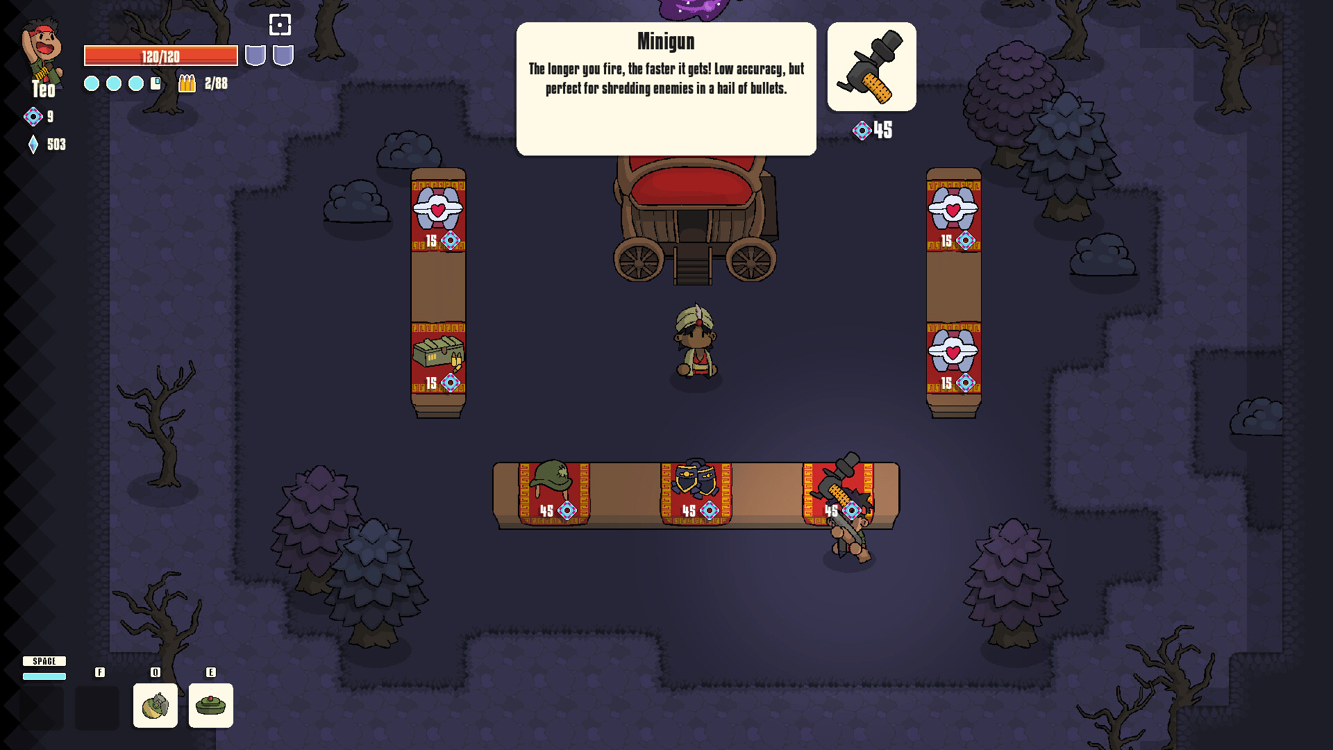Fast-paced, wave based arena shooter roguelike with hand-drawn 2D art. Unlock new weapons, items and characters with unique abilities to move through five distinct stages full of enemies and bosses.