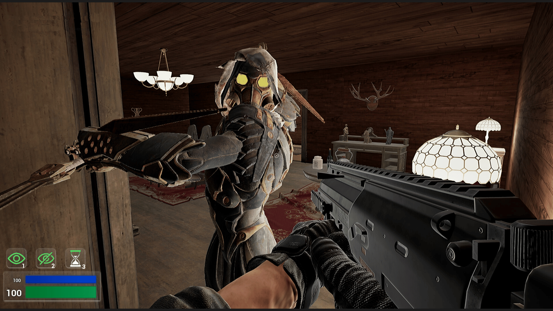 Grandfather contacted aliens, a portal opened, and he was taken! Solve puzzles, go through the portal to space, and save him. Survive with 3 skills: see enemies, turn invisible, stop time to freeze foes. Fight aliens, defeat the giant boss!