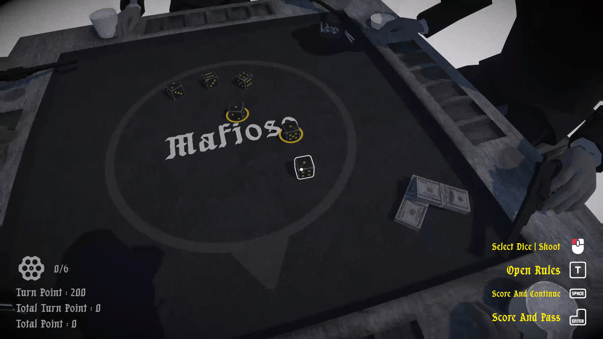 A high-stakes mafia-themed dice and risk game. Four players roll dice to climb toward victory, then face off in deadly rounds of Russian roulette. Strategy, bluffing, and hidden cards determine who walks away alive.