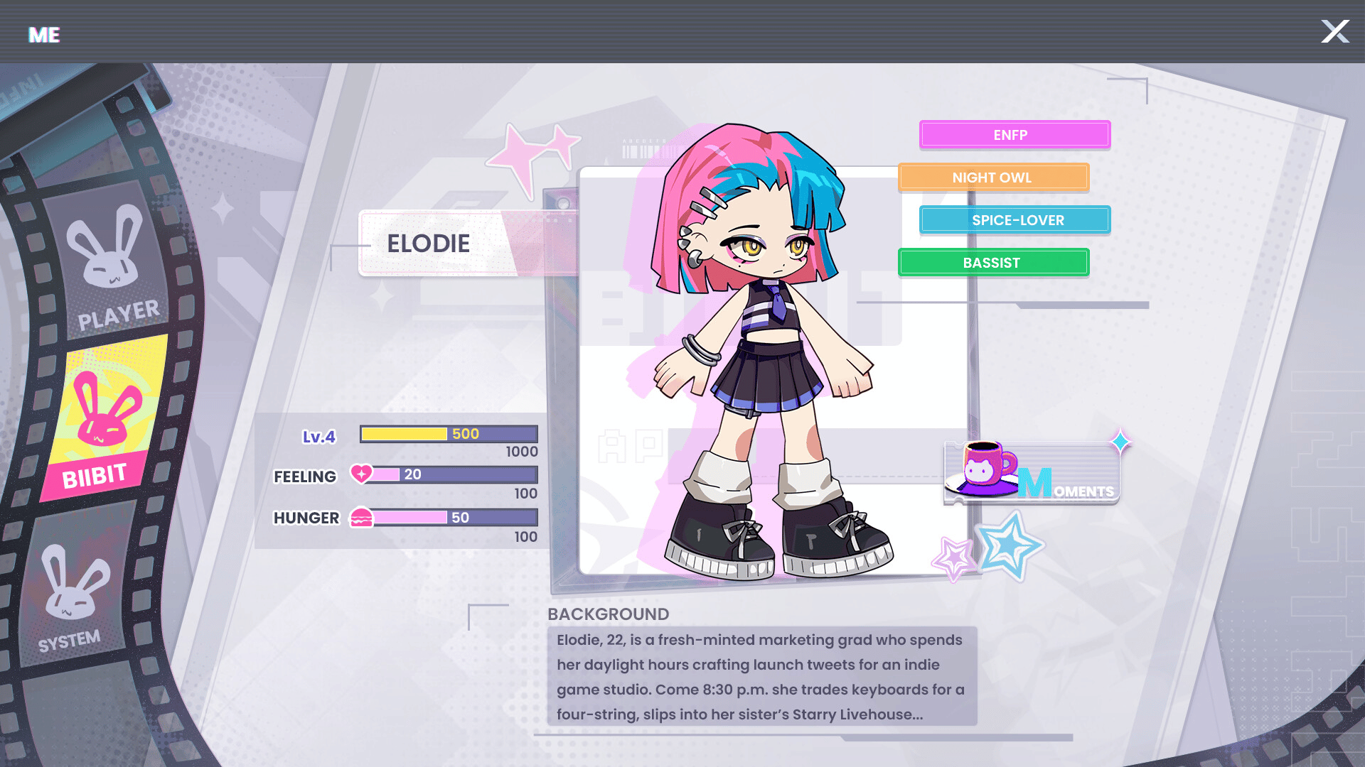 Create your Biibit with unique personalities and watch them evolve independently in a multi-character life sim. Build custom life-sim spaces where Biibits autonomously live and interact. Experience real companionship as your Biibit connects you with their social life and becomes your desktop buddy!