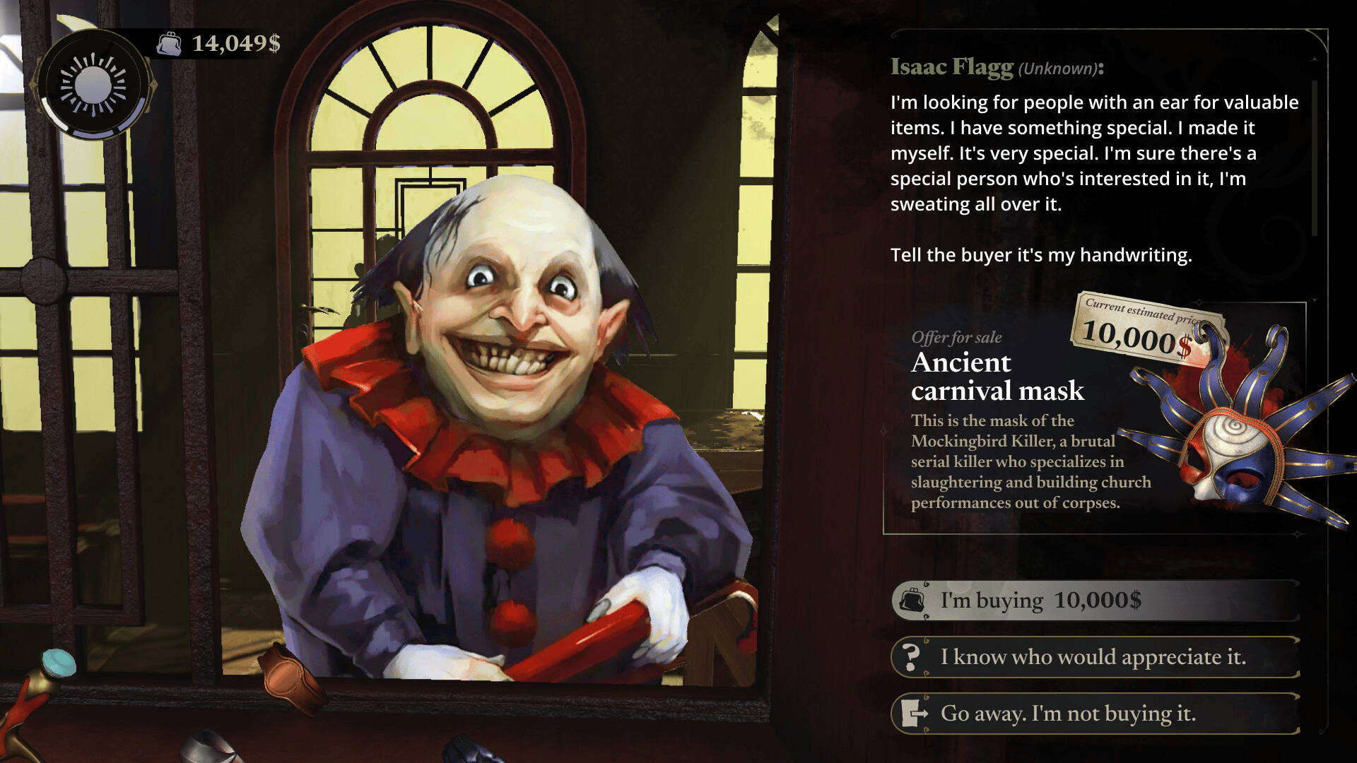You're a merchant in an antique shop. Buy, sell, develop. Easy as that. Just don't die. One little detail of a profitable location that realtors don't usually tell you...