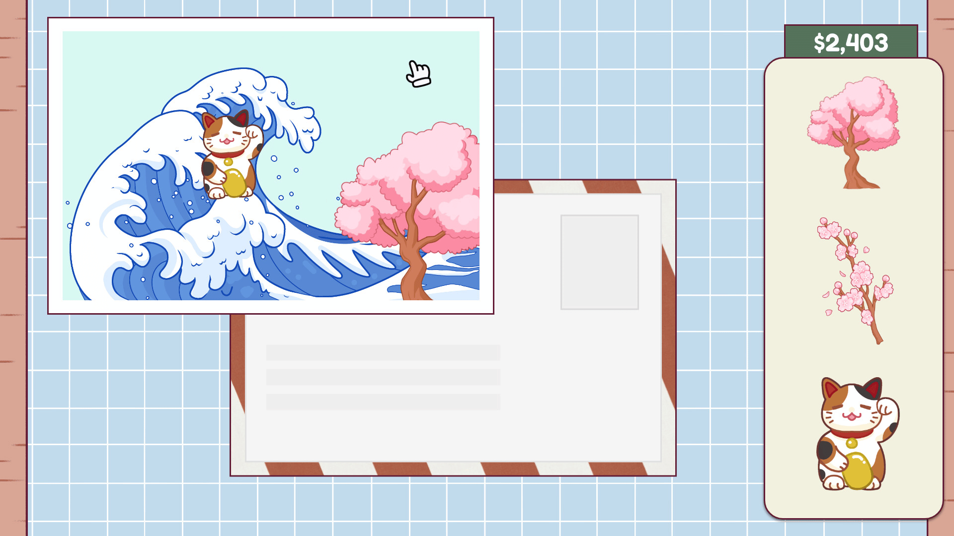Craft and sell charming postcards to your customers in a relaxing sandbox full of color and creativity. Carefully Stamped is a cozy job simulator where you are a postcard designer. Take on new orders, craft the cutest mail, write a wholesome note and collect stamps to send your postcards ️