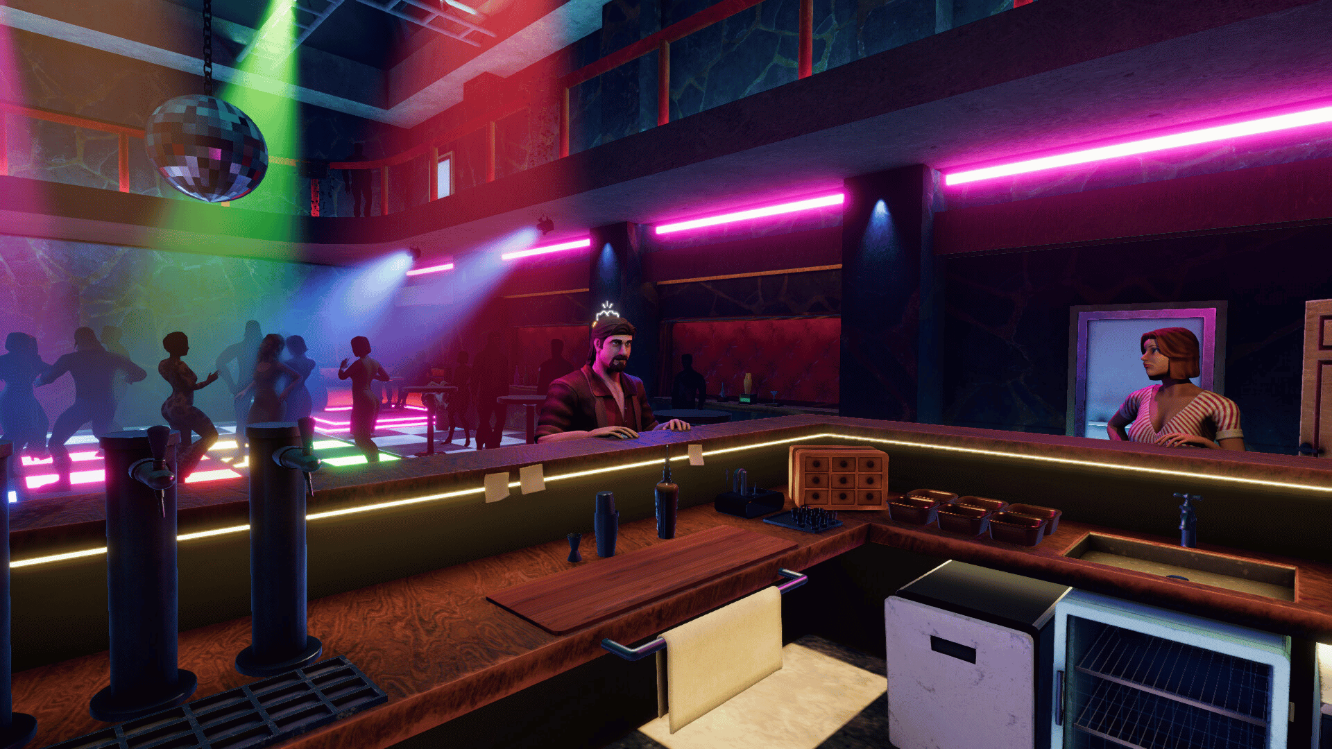 A story-driven management sim set in a 1980s disco bar. Mix drinks, handle guests, and uncover secrets behind the neon lights.
