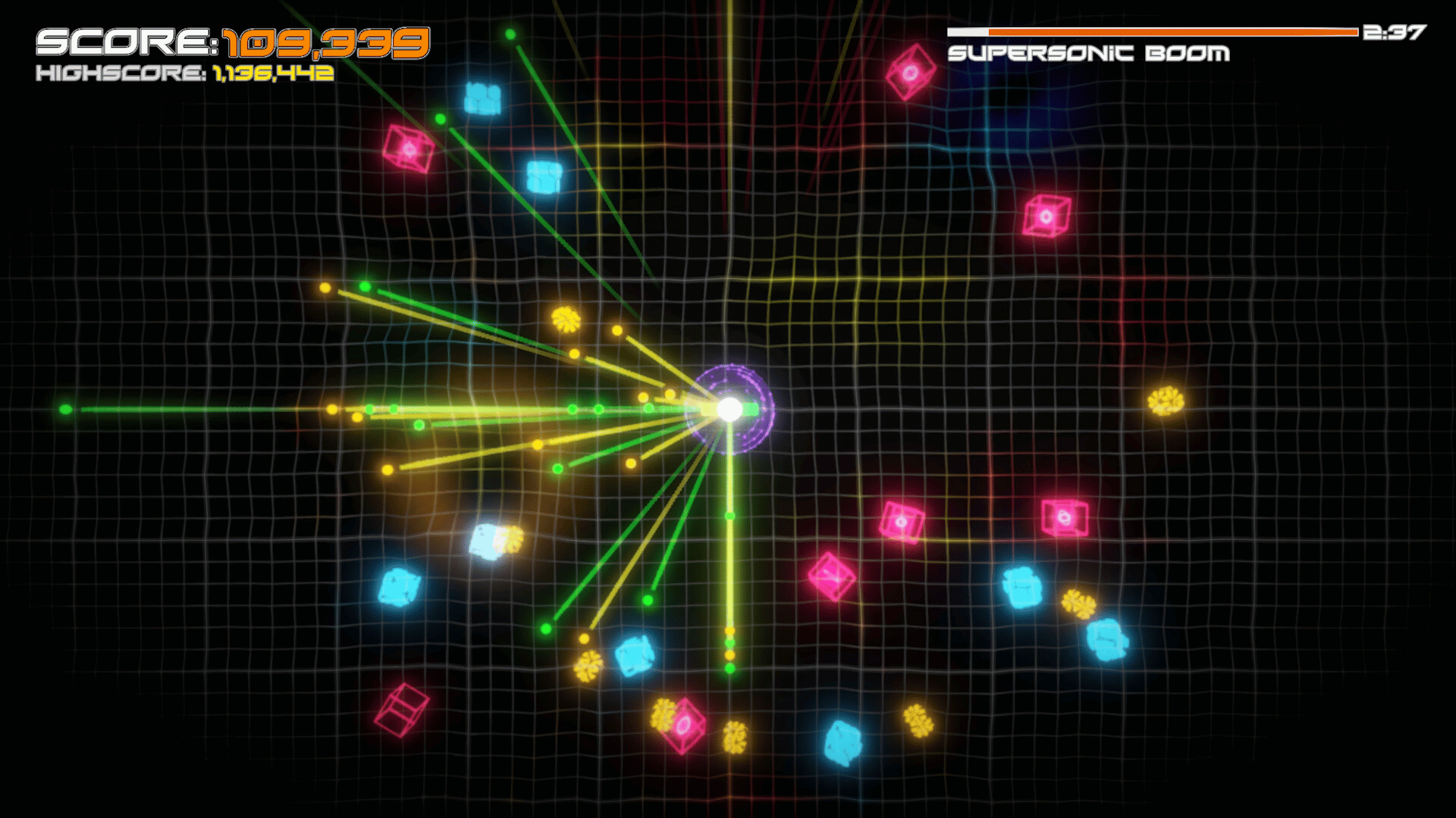 Blast your way through 120+ dynamic music-driven levels in this twin-stick arcade shooter. Defend against waves of color-coded enemies that spawn to the beat and use tight reflexes and precision color-matching to score big against the chaotic audio-fueled spirals.