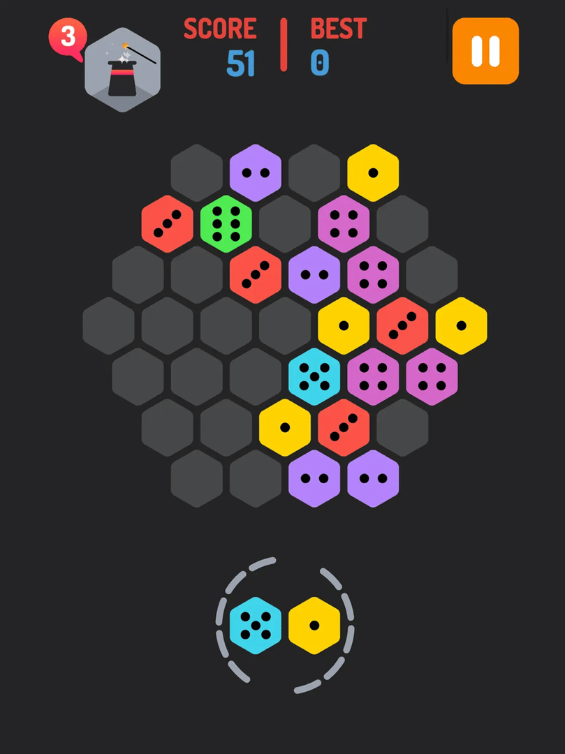 Merged Hexa Puzzle is a block puzzle game. Your aim is to merge blocks to get higher blocks on the board. Players control the bottom of the screen the three hexagon group drag to the top of the board. If there is connected to three or more than three the same number of hexagonal adjacent will upgrade to a higher number of squares, "M" is the final number, if three or more than three connected will be completely removed. Wish you have a good time.