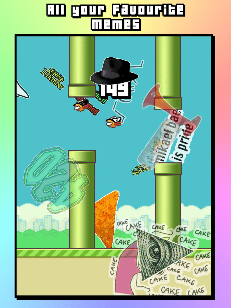Montage parody + most popular game ever = loominati confermed! This flappy bird parody delivers more than just a few minutes of fun. It's actually a real game with leaderboards, achievements and stuff to unlock. It's combining a quality gaming experience with the fun and randomness of our beloved internet-memes. Try reaching better highscores to unlock new skins or get the pro-pack to gain access to more funny sounds, memes, skins and the newly added dank mode.