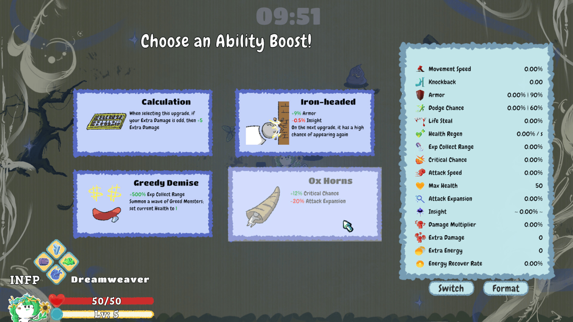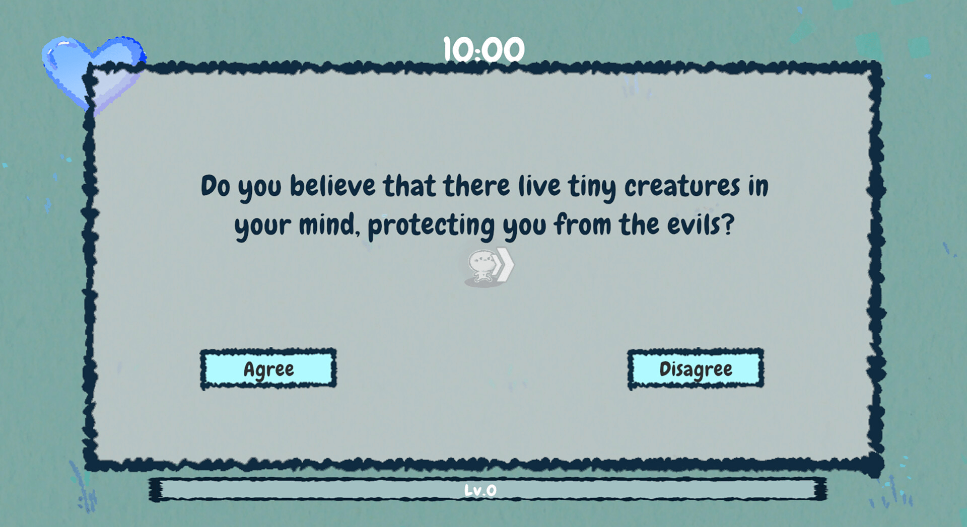 Inspired by MBTI, this is a fast-paced, top-down arena shooter roguelite where your inner world becomes the battleground. Harness the power of four elemental sprites to fend off the sinister forces lurking in your mind. No matter what your personalities are, you can conquer your darkest thoughts!