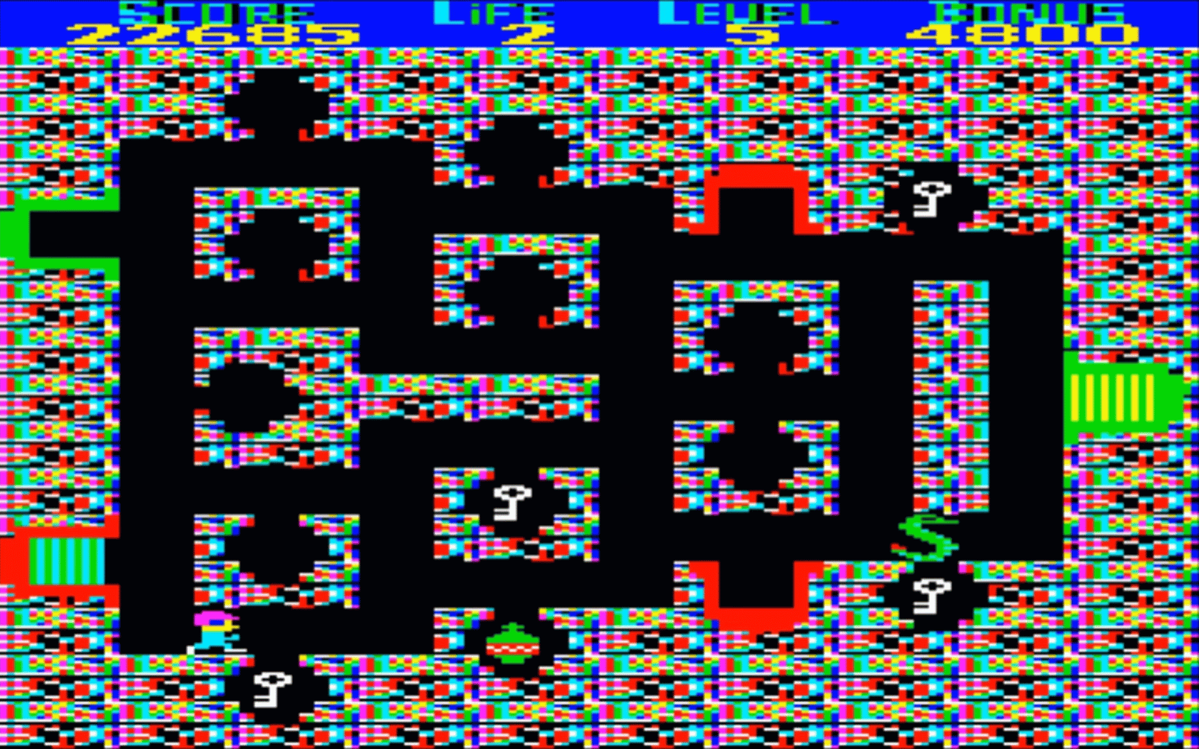 One day, while studying ancient Egyptian ruins, the player discovers an unknown pyramid buried in the sands of the Sahara. Once inside, the player must try to collect all the treasures, including: statues, old jars, papyrus, and masks. On each level the goal is to gather all the keys and reach the exit door to the next level, while avoiding dangerous snakes, fireballs, and ghosts. The player moves in the cardinal directions, and can fire their gun forwards. Dangers appear in their chamber, and then roam the halls.