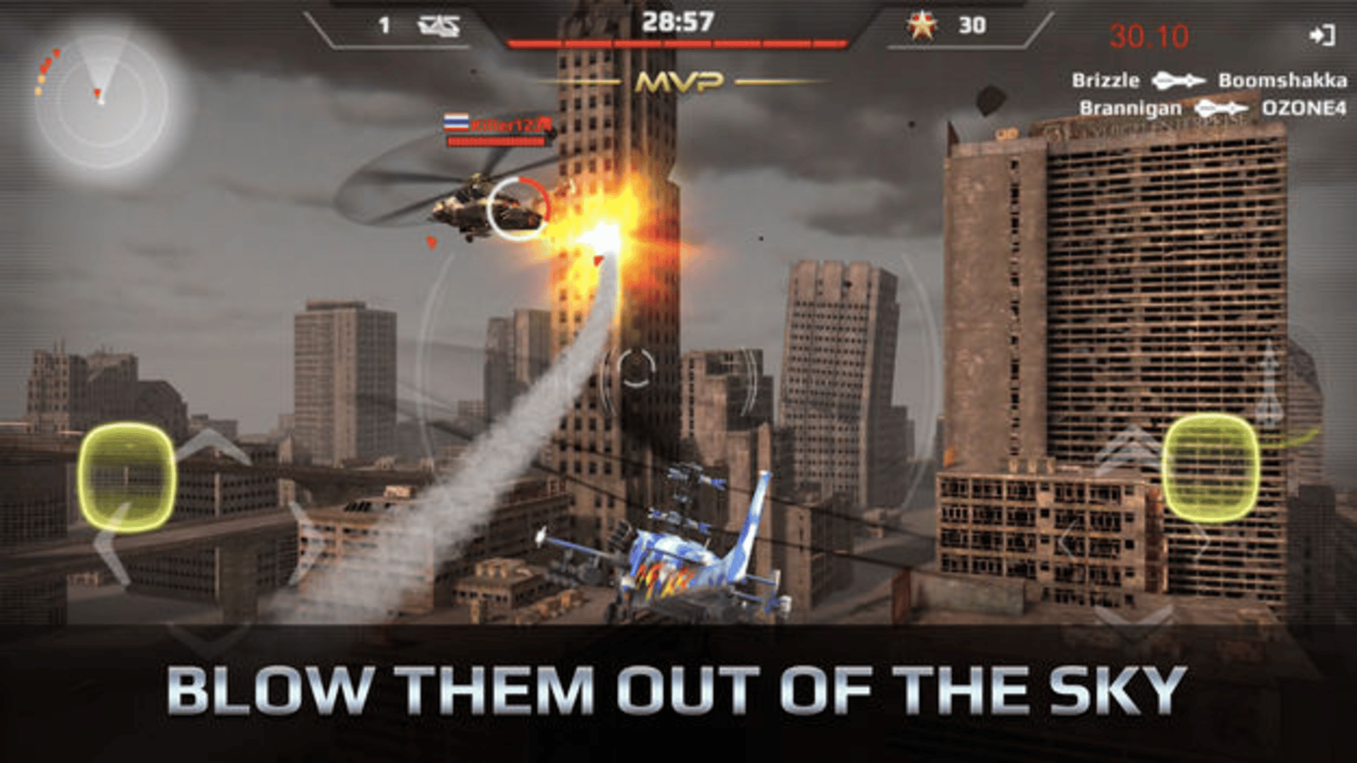 Compete in the most ACTION PACKED multiplayer airborne battles, with easy controls and AWESOME DOGFIGHTING action! Take control of a mighty Battle Copter and immediately plunge into 8 player ONLINE BATTLES to the death over 5 dangerous locations. Lock on your missiles and UNLEASH HELL on your opponents as you swoop through the arenas in aerial combat.