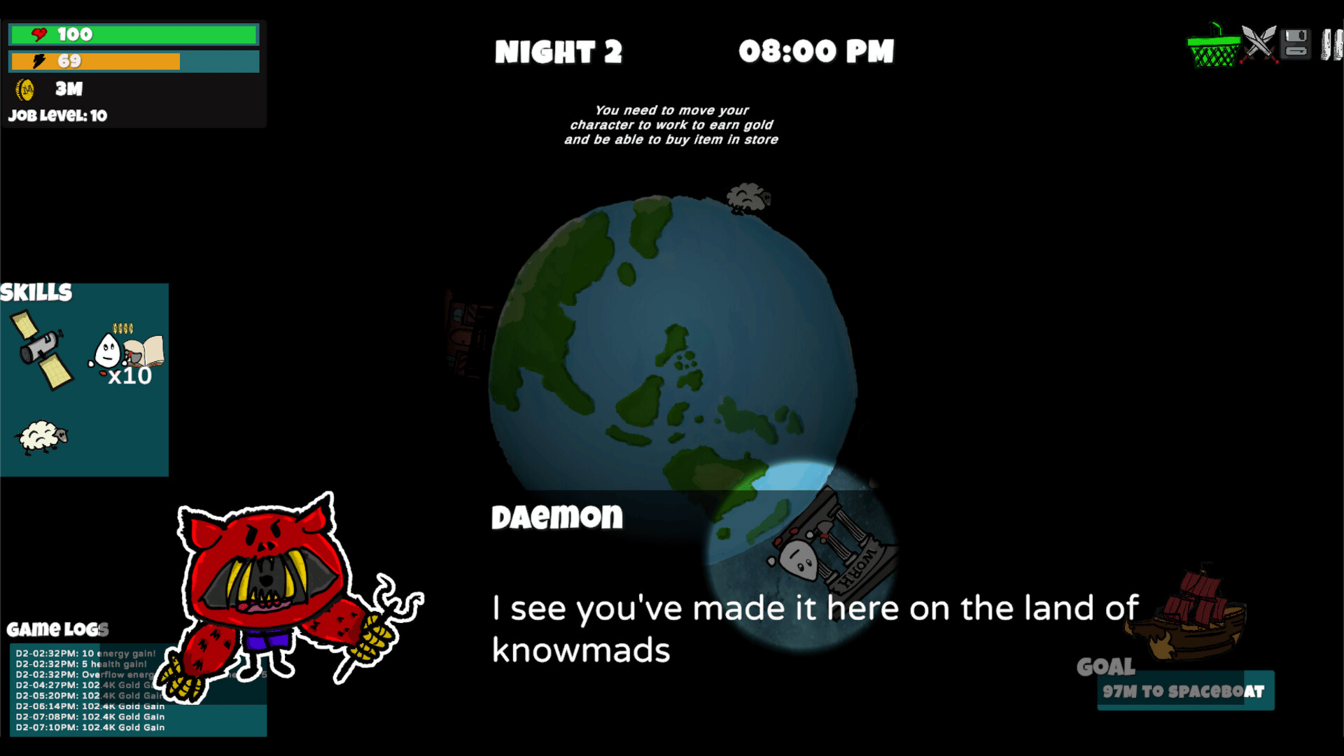 Build your base, earn passive income, and survive each night. Strategize your way off the planet in this cozy-but-challenging game.