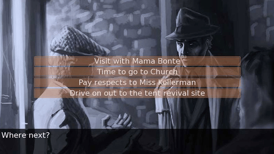 A Visual Novel set in the Deadlands Noir RPG Setting from Savage Worlds. * Now updated to include Episode 1 and 2 * New Orleans, 1935. Whoever called this "The Big Easy" sure got that one wrong. Things are tough all over. Honest work is hard to find, and even dishonest jobs are getting scarce. The one thing that's not in short supply is trouble. From shady thugs to crooked cops to mafia soldiers, there's plenty of characters out there looking to give an honest Joe a hard time. And that's not the worst of it. There are stories going round about things that go bump in the night. Things you wouldn't want to meet in a dark alley on a darker night. And those stories aren't just coming from rummies or saps who read that epitaph rag. Still, there are a few heroes left in the concrete jungle. Steely-eyed private dicks, fast-talking grifters, wild-eyed inventors, and shadowy houngans still struggle against the encroaching darkness. With enough moxie--and more than a little luck--they might just be enough to turn the tide. This is just one story. The story of Harvey Jenkins, Private Investigator.