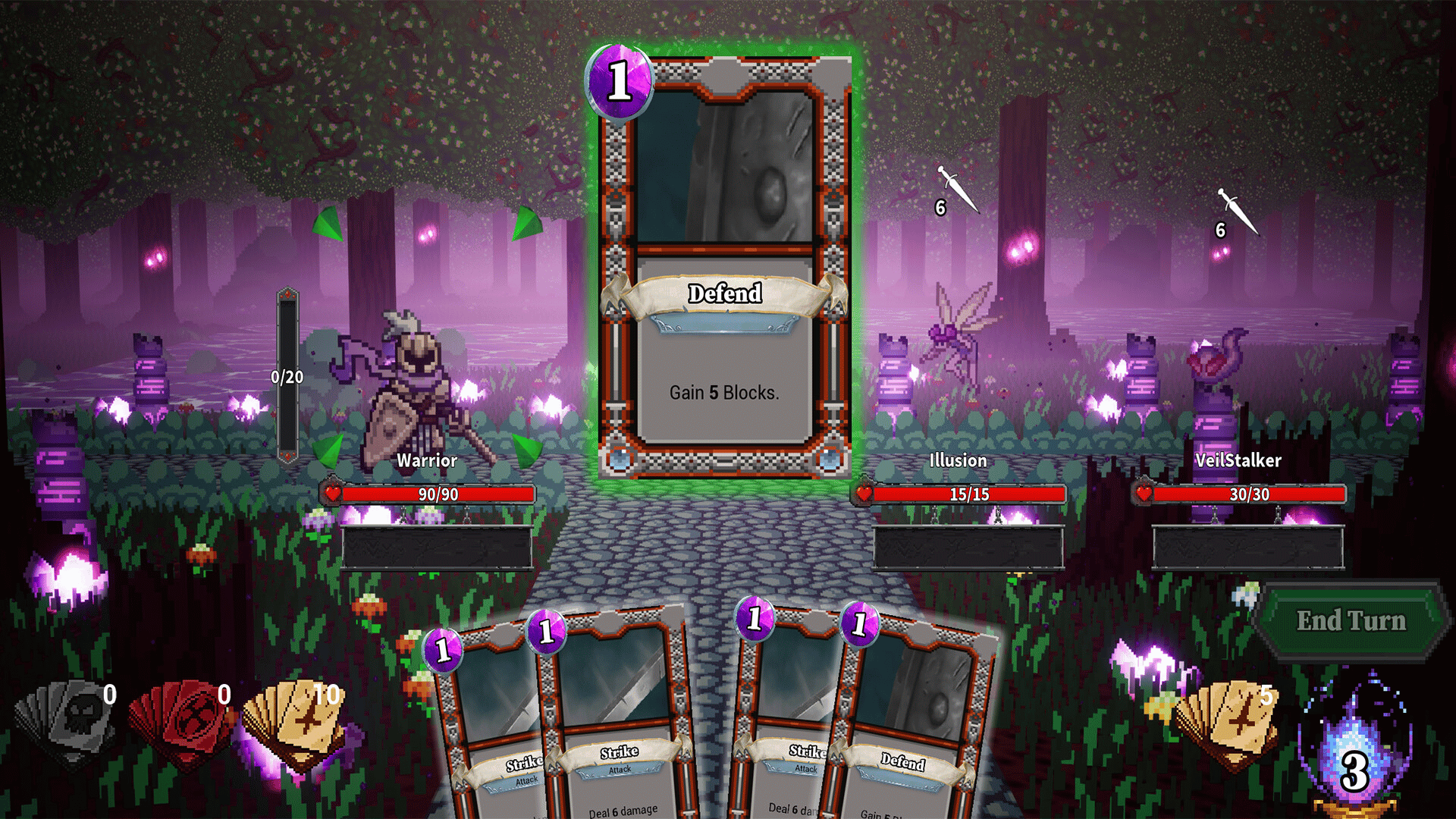 Veilwalkers is a dark fantasy roguelike deckbuilder where every card you play builds momentum. Strategically manage your deck, master turn-based combat, and battle through cursed forests filled with twisted enemies and eldritch secrets.