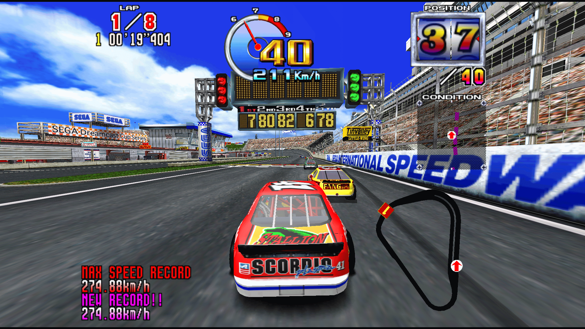 Daytona USA 2: Power Edition is a updated re-release of Daytona USA 2: Battle on the Edge, which is the original game with a few changes: It changes the look of the beginners track back to a classic "Oval racetrack", and adds a new "Challenge" track that combines the previous four tracks into a long sprint. It also adds a secret "Specialist Only" Hornet car with a code, which allows players to customize the original Daytona USA Hornet to their specifications. The game saw no home ports, only appearing in "Like a Dragon Gaiden: The Man Who Erased His Name" as "Sega Racing Classic 2".