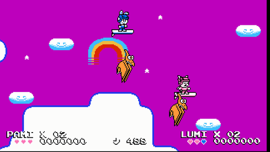 "Cute Star Heroes" is a game inspired by the Klonoa series and 8-bit games on the NES. Play as one of the two titular "Cute Star Heroes" -Pami, a brave blue-loving rabbit, or Lumi, a girly pink-loving cat. Travel through eight different worlds and stop Lord Hades from taking control of the universe.