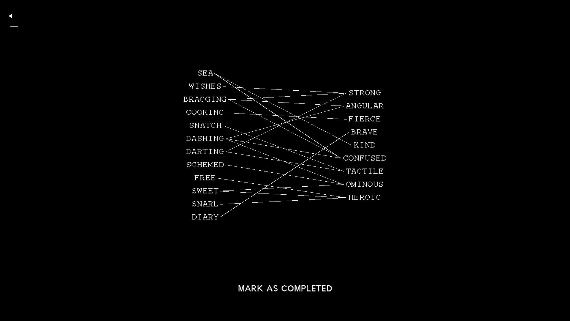Decode a layered narrative as you complete the work assignment of a Diacritic: to fit shapes into orthogonally projected outlines and provide answers to inscrutable questions.
