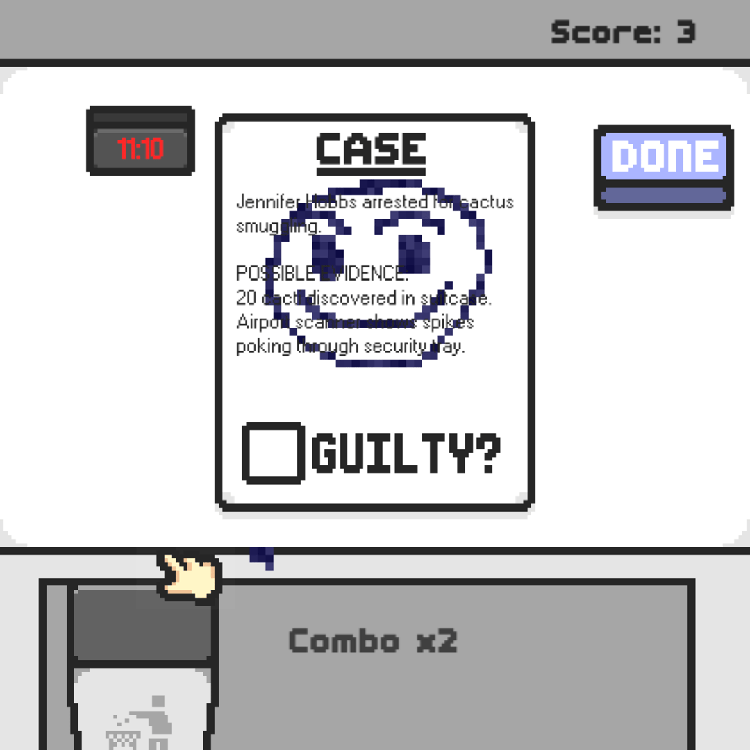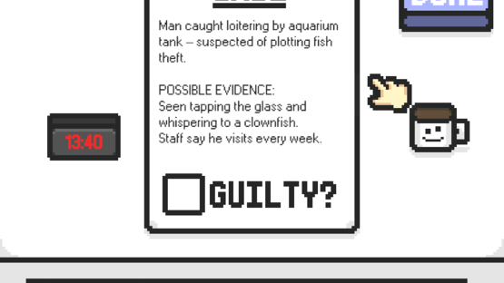 "Ace Attorney" meets "Papers Please" meets speed dating