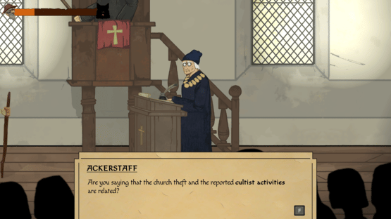 Old Thiess: The Werewolf’s Trial combines exploration, combat, and the intensity of a 2D platformer with the interactivity of a narrative game where the player's actions influence the outcome of the story. Inspired by a historical event, the game tells the story of the trial of Old Thiess, a 17th-century Livonian peasant accused of being a werewolf by the Church and authorities. Through his testimony during the trial, relive his exploits in Hell as he battles demons and witches serving a diabolical cult to protect the villagers of Jürgensburg. Depending on how well you perform, the villagers will either side with you or turn against you during the trial.
