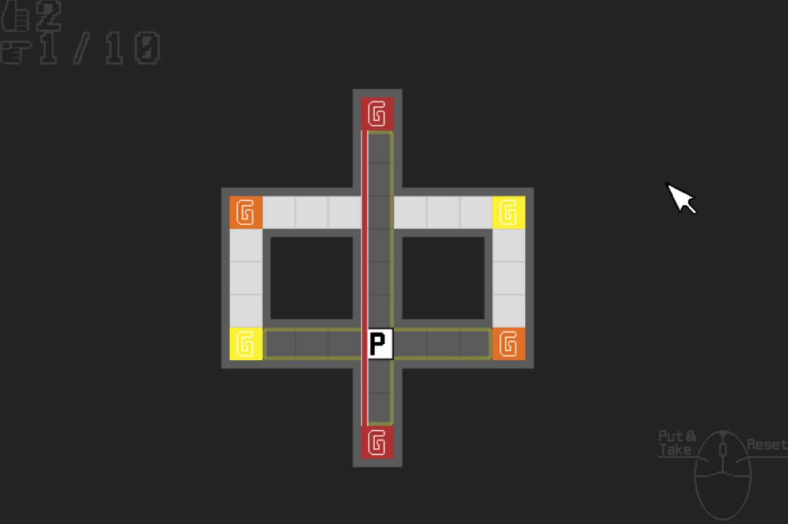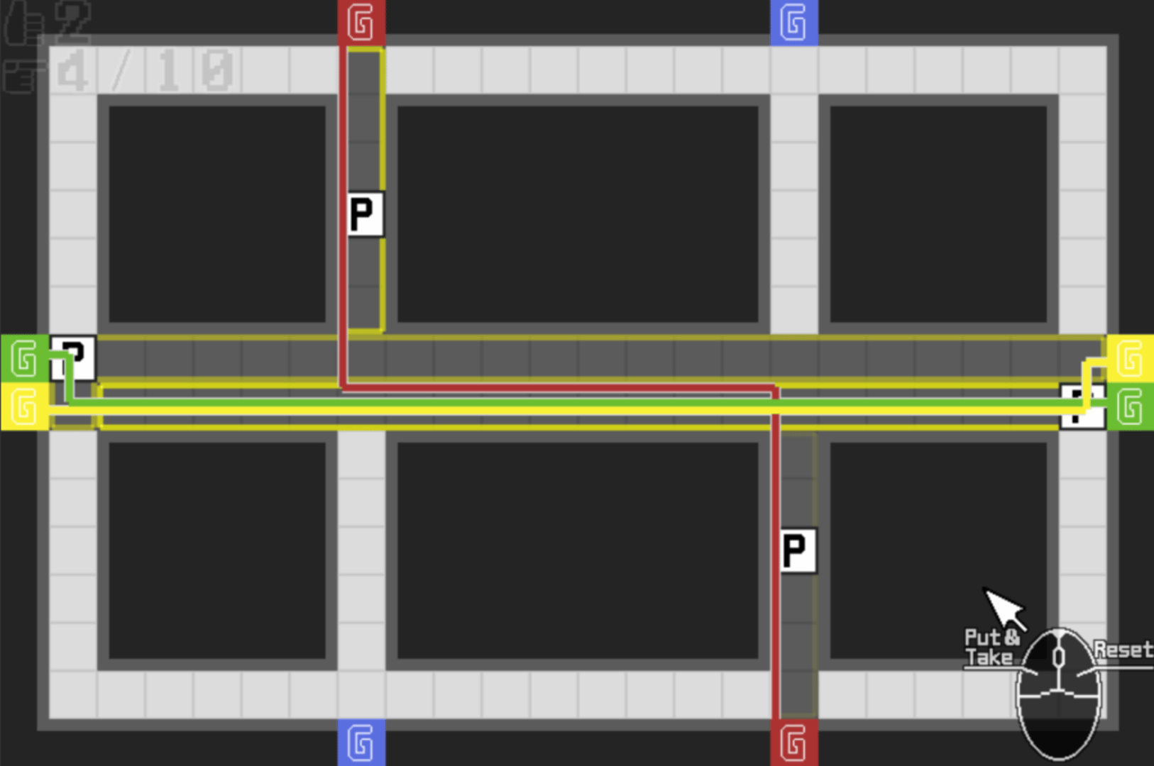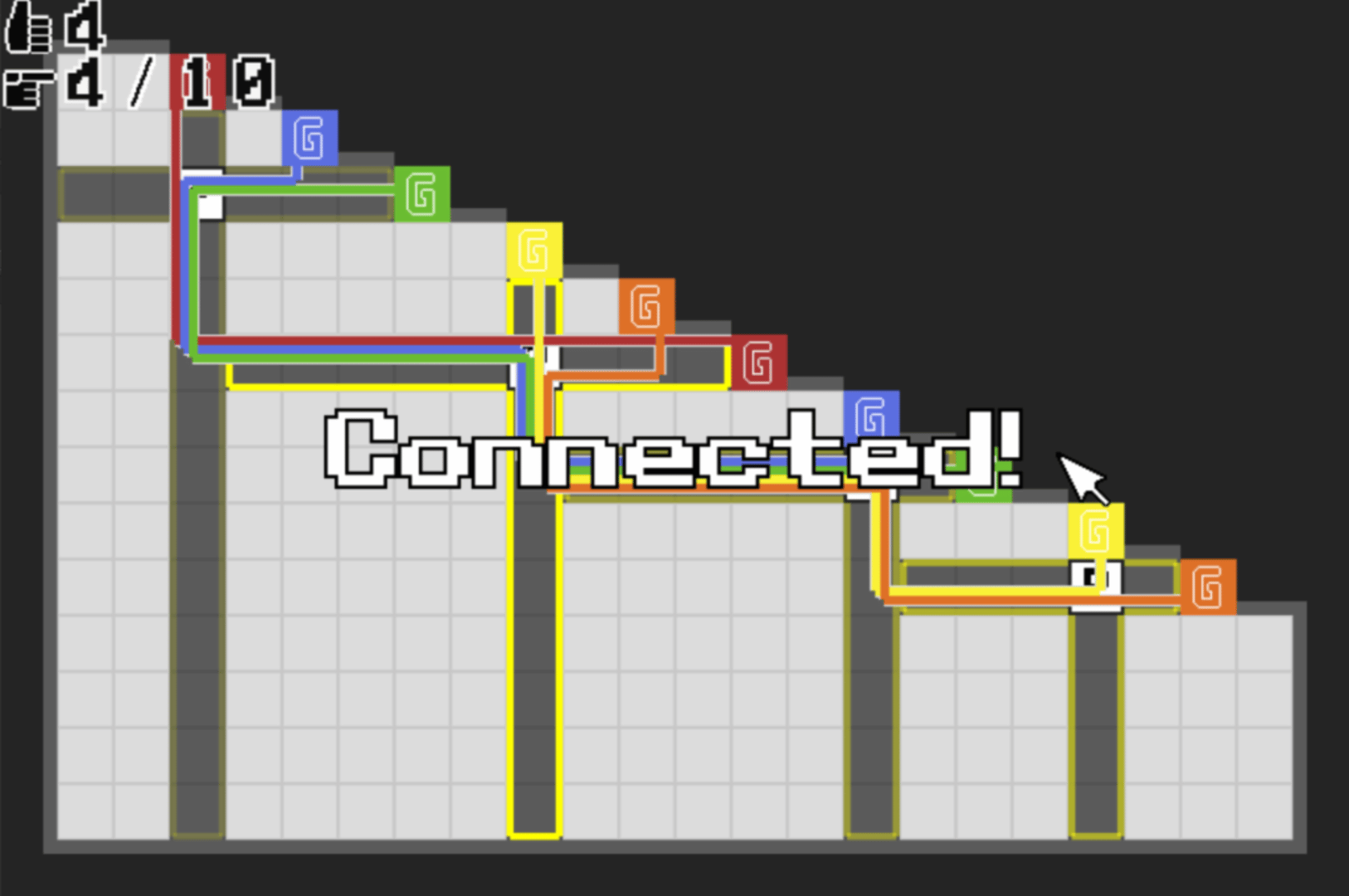 Connect is a puzzle game where you have to connect two places! Place "P blocks" that extend in four directions when placed, and try to connect "G blocks" of the same color.