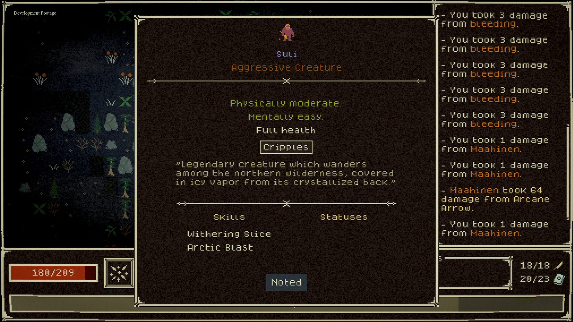 A turn-based roguelite RPG set in a mythic northern wilderness. Explore procedurally generated lands, battle eerie folkloric creatures, and craft powerful builds on your journey to the land of the dead. Experiment with diverse playstyles in a richly tactical, old-school inspired adventure.