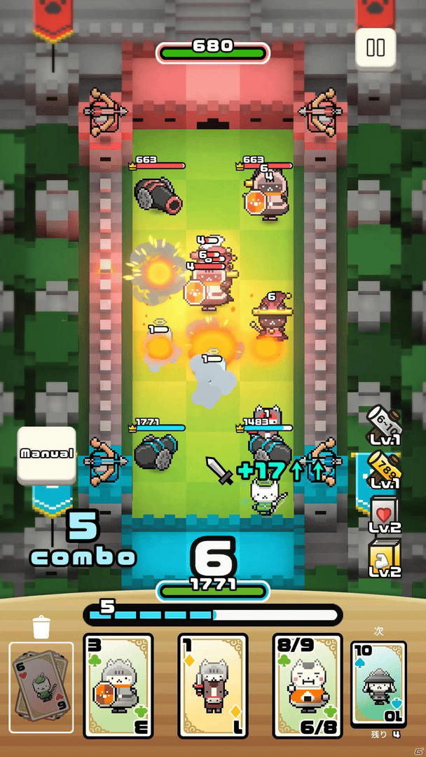 A rogue-lite deck-building tower defense game! Connect numbers like solitaire to play cards and summon cute cat soldiers! Summon lots of them to destroy your opponent's fortress!