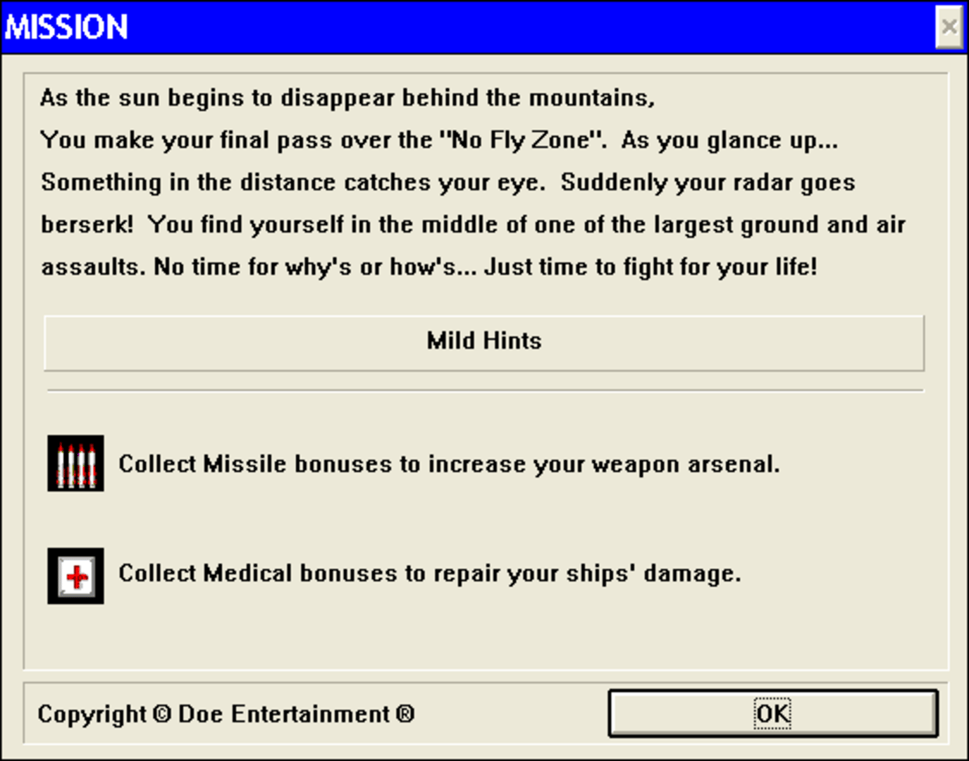 Turn and Burn your F-18 through the No Fly Zone! No time for whys'or hows'..Just time to fight for your life by Doe Entertainment, published by Geni U.S.
