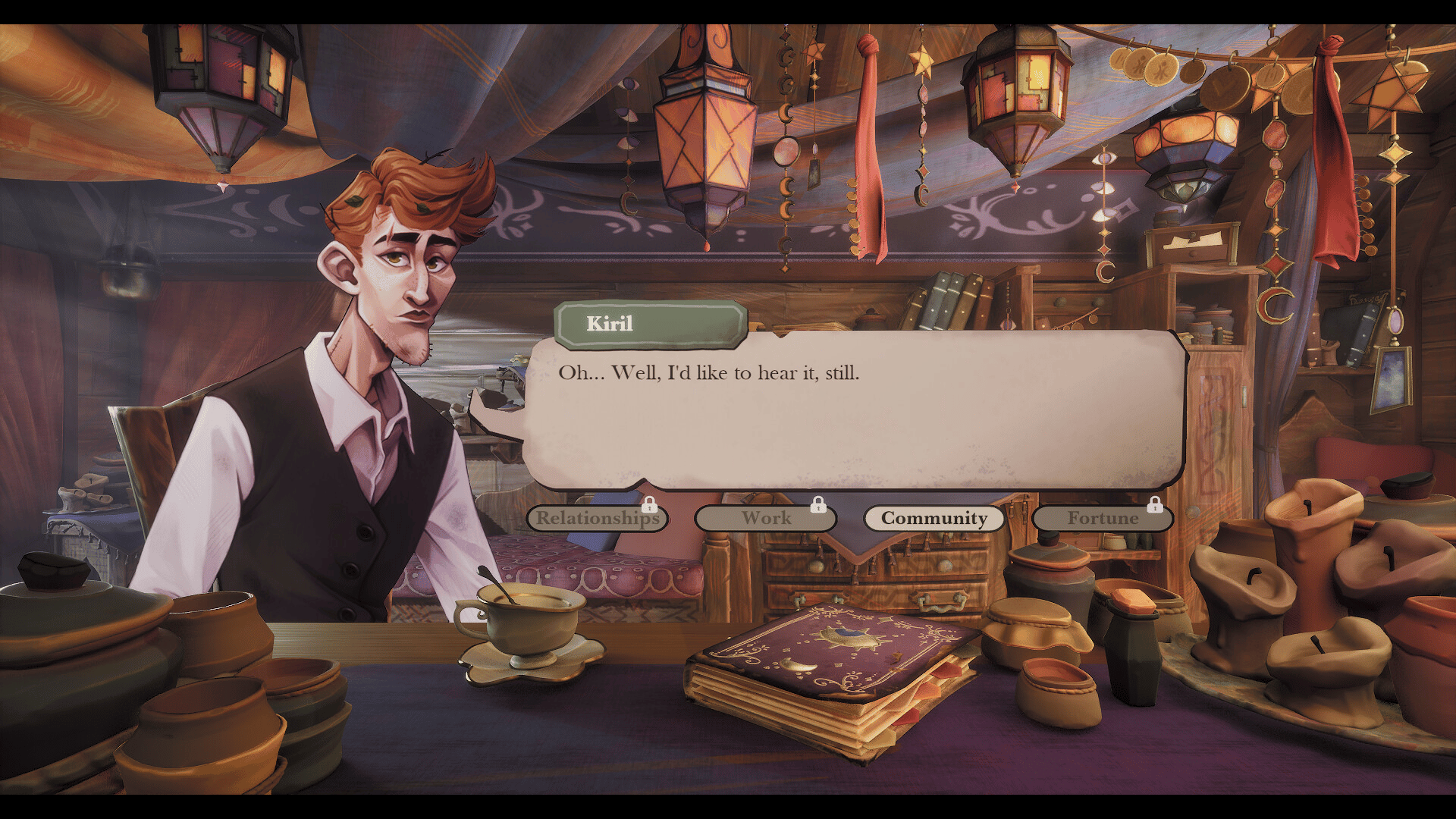 You arrive in a small village as a fortune-teller who reads the future in tea leaves. But an apocalyptic vision leads you to question its tranquillity. What if you had a part to play in this? Ready your cups and tea leaves, as the future of this village will be shaped by four unusual visitors.