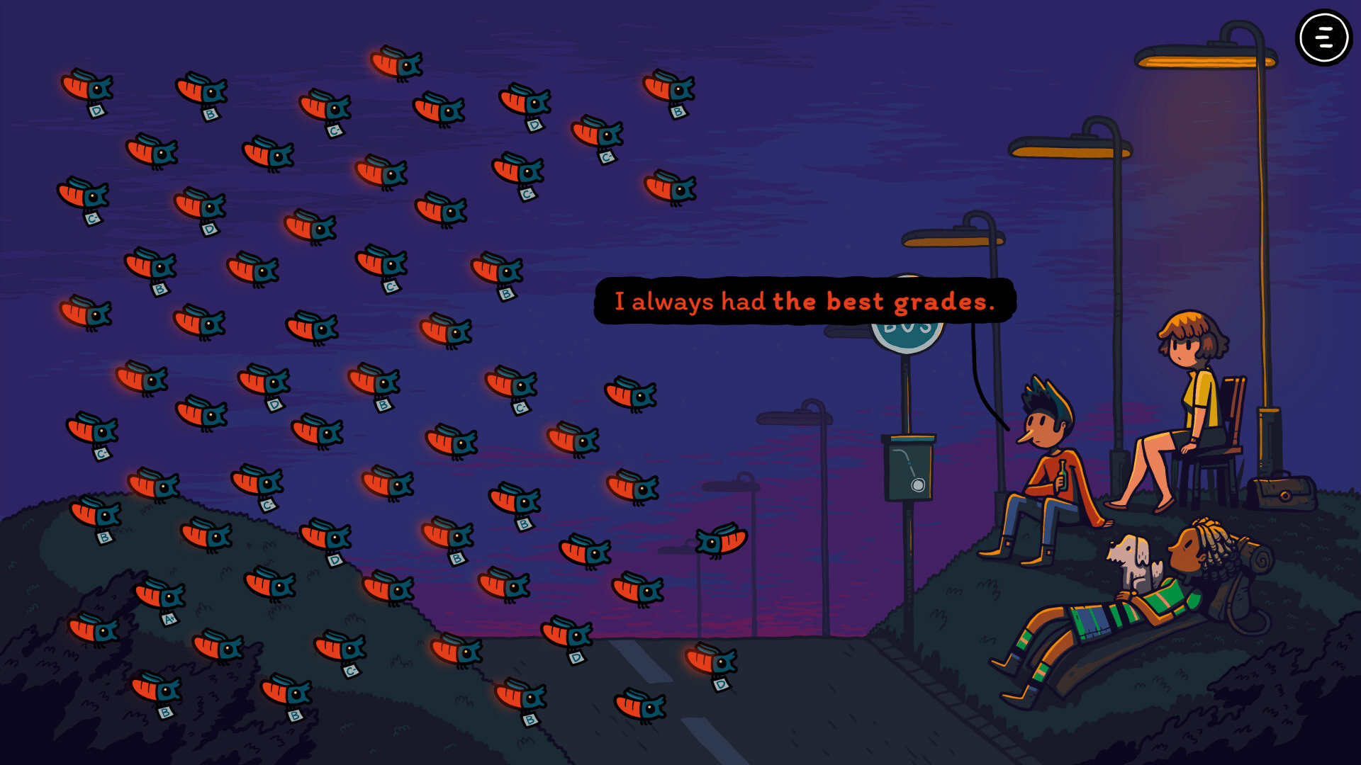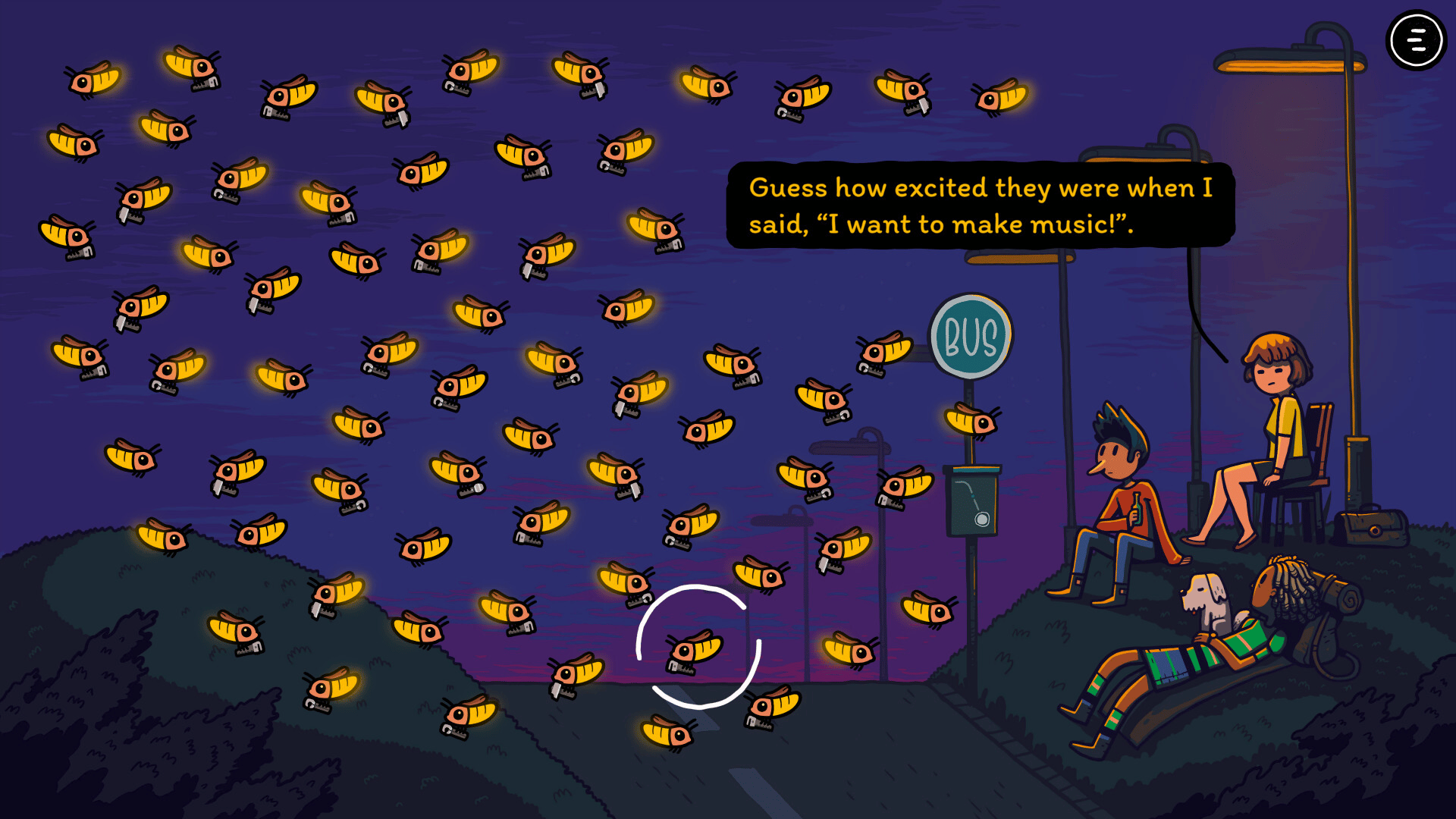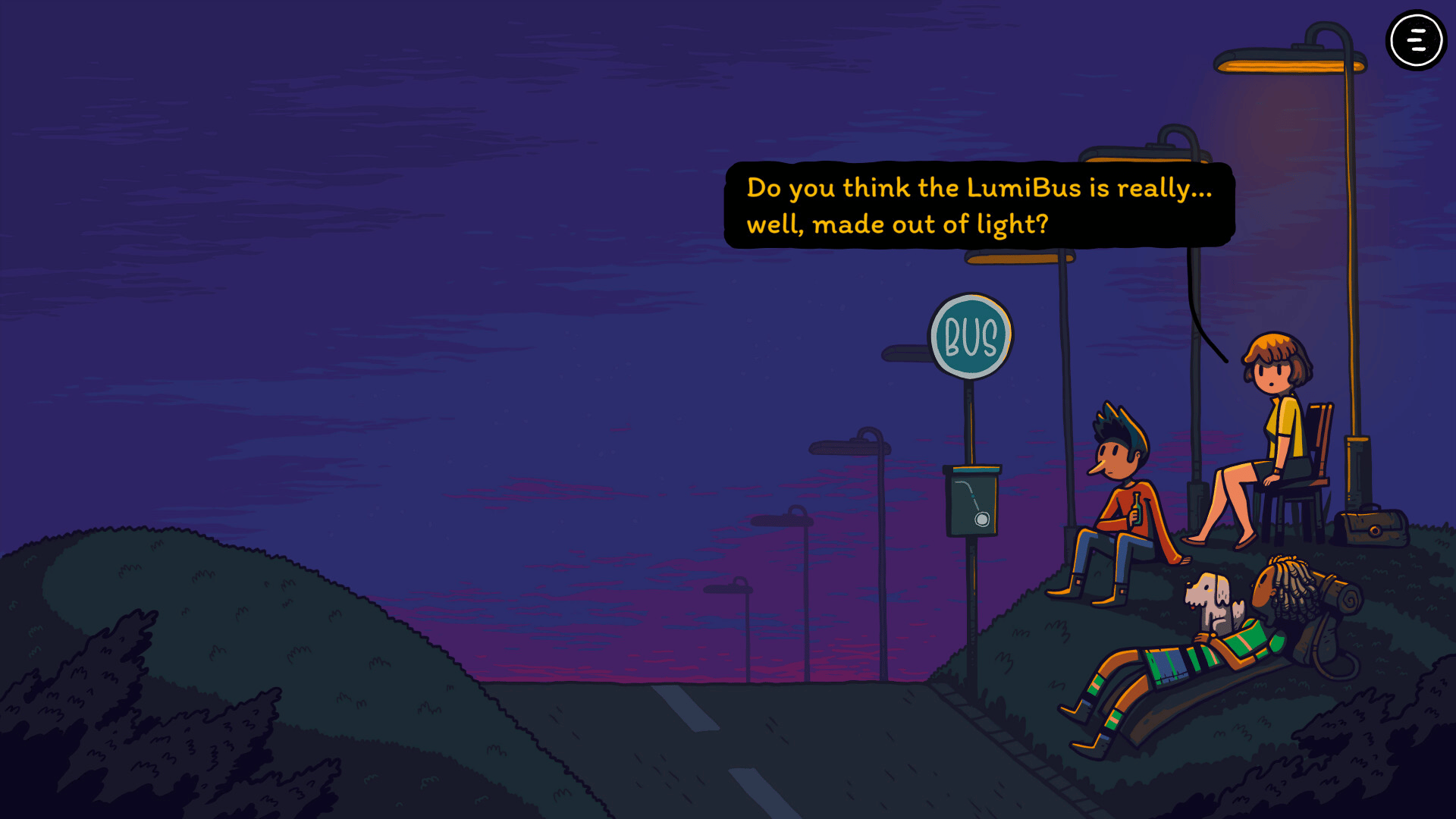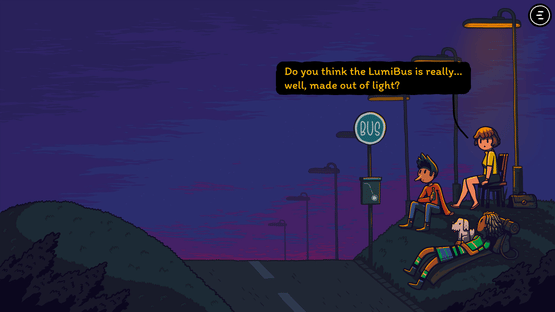 LumiBus is a small, cozy game about everyday moments, simple encounters, and the little stories that unfold along the way Three people and a dog are waiting for the bus made of light. Their wish to turn their lives around attracts a myriad of fireflies...