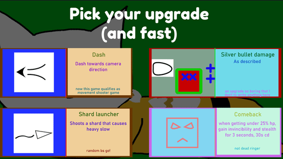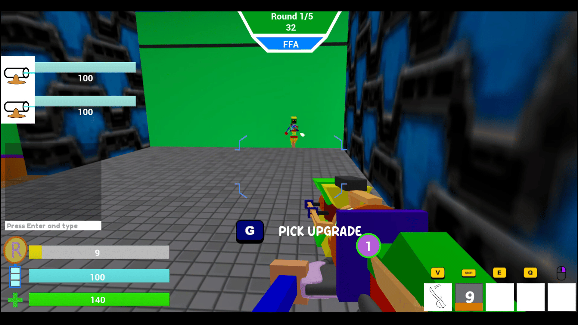 A pvp arena shooter featuring roguelike progressions within a match! Pick a class and jump into a chaotic fight! Combine skills and abilities for (stonk) synergies Combo, snipe, assassinate, troll, throw people off a cliff, give handicap, do whatever you want to have fun!