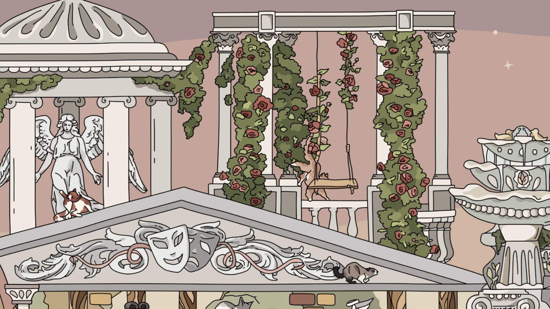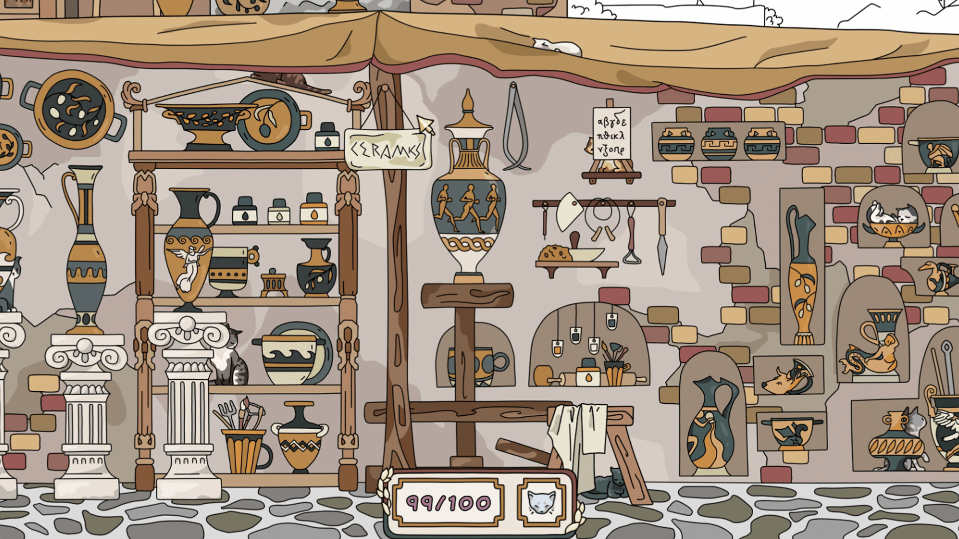 Explore this mysterious Ancient Rome world in the new game Hidden Cats: Rome finding cute cats and paint black - white locations with colored paints.