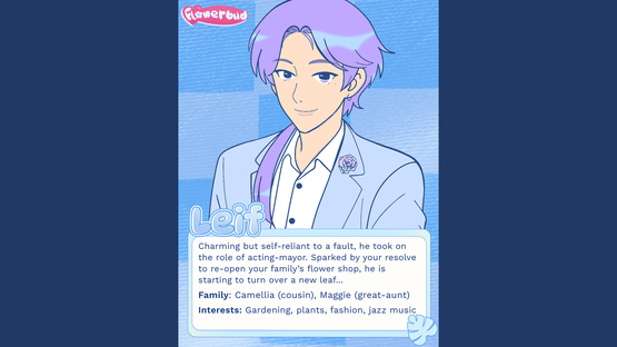 A narrative-driven flower shop management and relationship sim where YOUR choices shape the town’s future. Customize your flower shop, craft unique items, and unlock different outcomes through branching dialogue and evolving relationships.