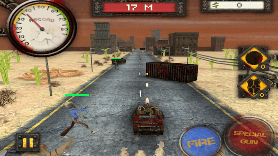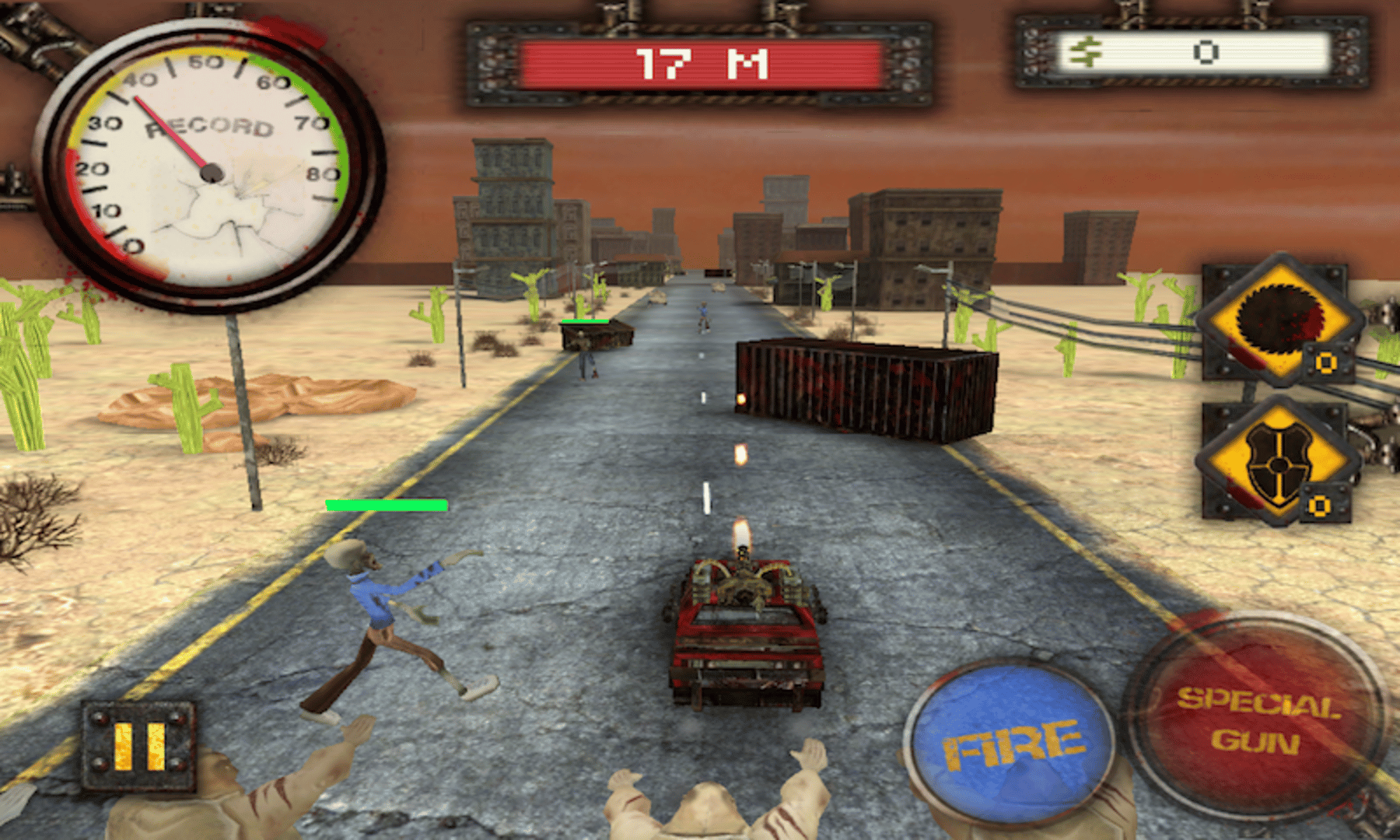 Apocalypse is near...the earth is completely invaded by zombies...and we can only count on you! In this fun and highly addictive game the goal is simple; get as far from the zombies while killing them from your jeep, but the game is not! With amazing graphics and effects you will want to keep killing them until the end! As you drive along the street horrible zombies will start appearing and chasing you. Don't let them catch you!