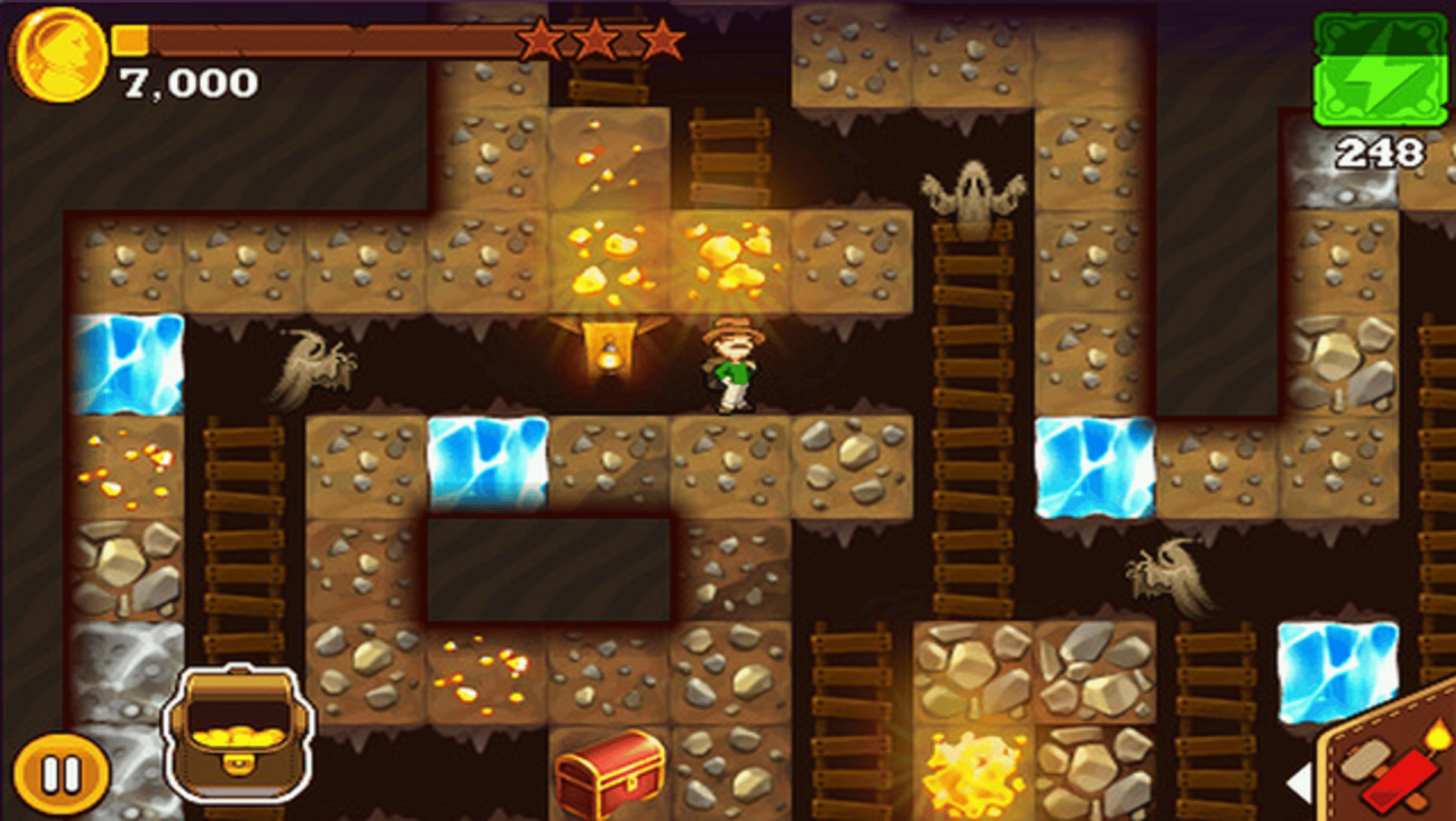 Dig your way deep underground to seek your fortune in the exciting gold mines of 19th century California in this addicting action puzzler!