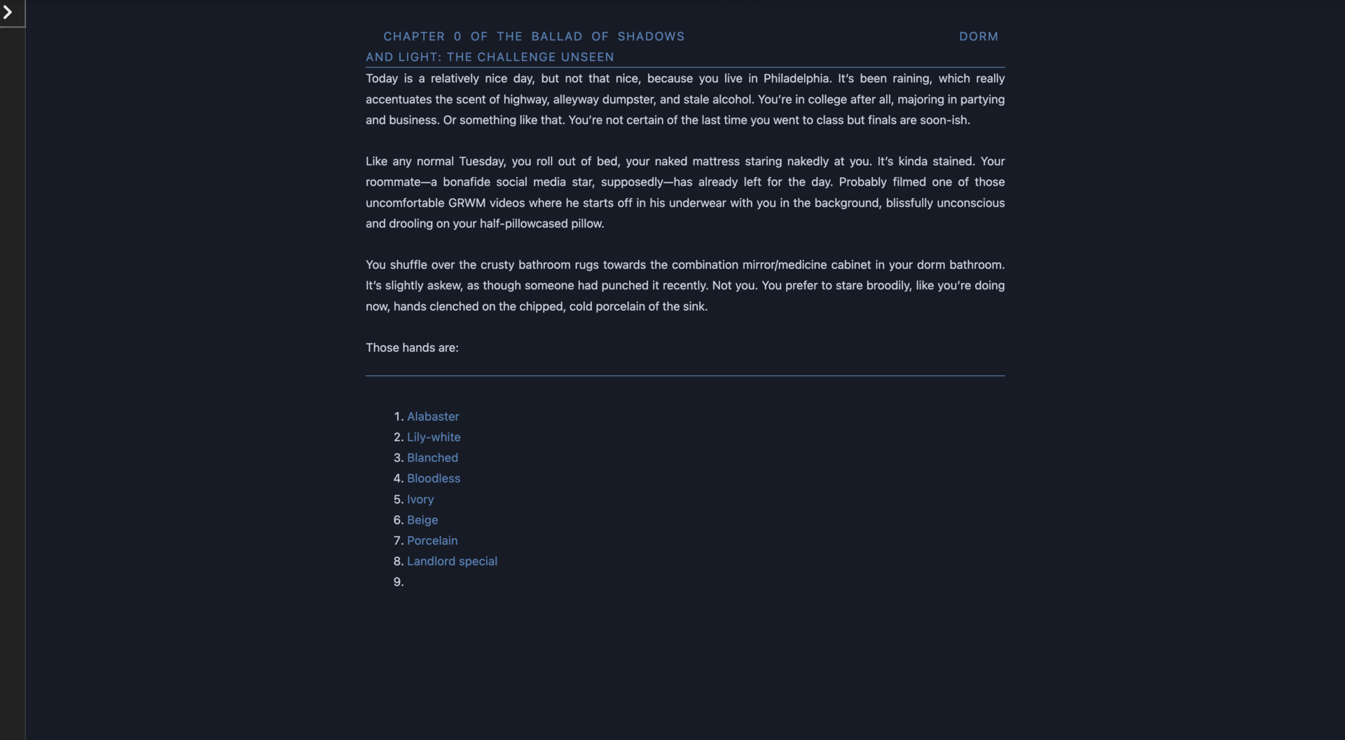 You were a struggling college student looking for a way out. What you found was far, far more. Plunge into the epic world of New Delphine, a kingdom awaiting its salvation at the hands of its rightful king. A sublimely, scandalously subversive dark fantasy ballad of warring brothers and the women caught in the crossfire rife with juicy plot twists and turns guaranteed to keep you on the edge of... your seat.