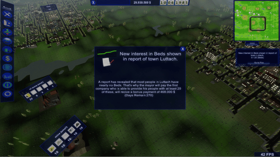 An economic simulation where you build up production chains as effectively as possible on a large scale terrain. You can choose from a large variety of wares and buildings to build up your production chain and use up to 4 types of transportation. Play against a complex economic with flexible prices and soon against each other or computer players.