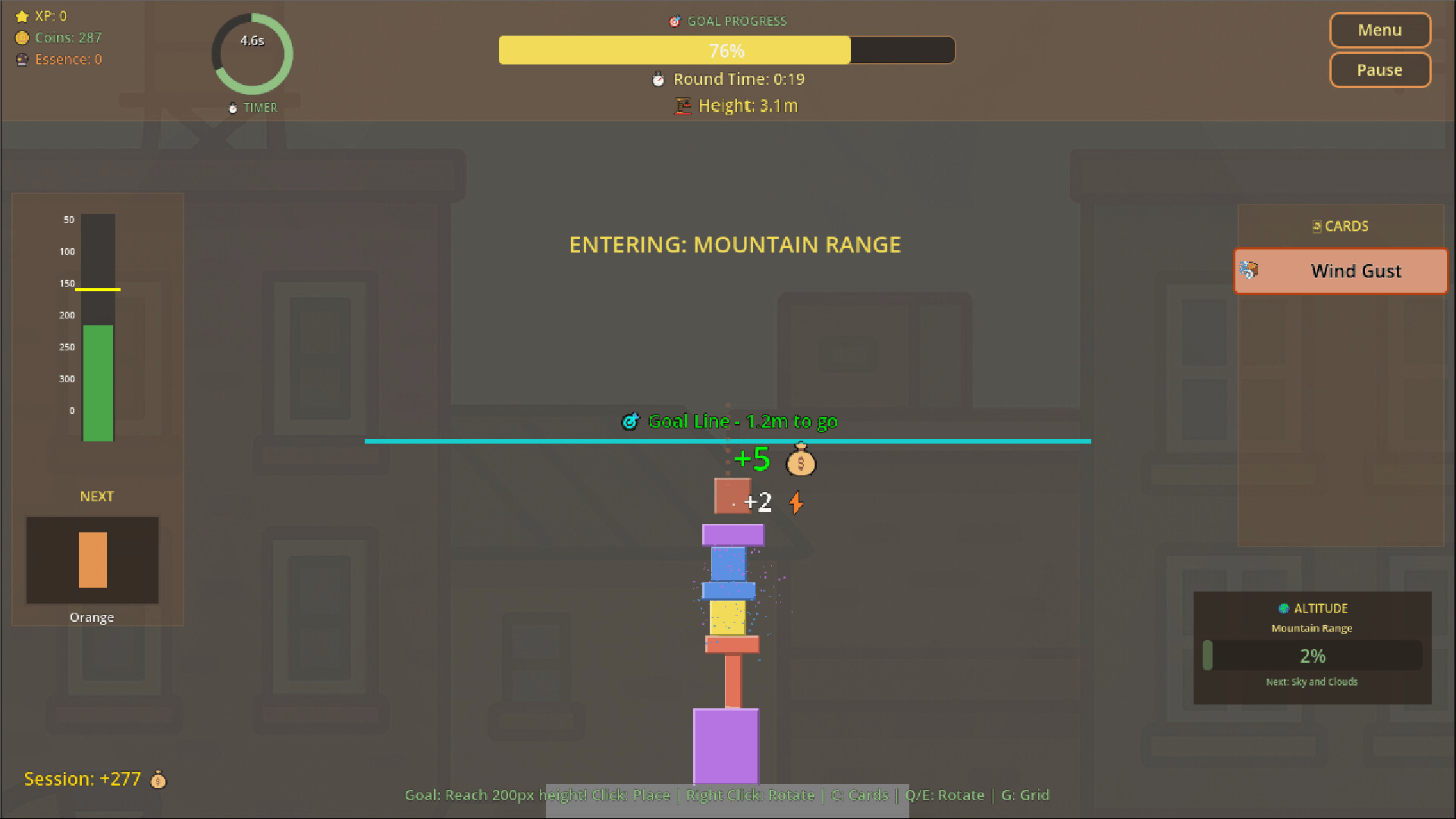 Stack geometric blocks into towering structures using physics and strategy. Combine deckbuilding mechanics with precision placement as towers grow taller and challenges intensify across persistent rounds.