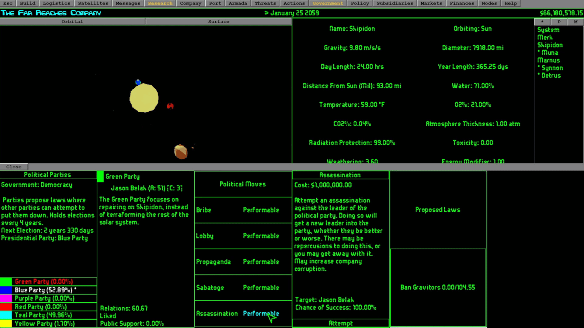 In this sci-fi simulator game you manage a company charged with colonizing the solar system. Balance company interests, logistics, research, space armadas, politics, buildings, dangerous planets, and outside alien threats.