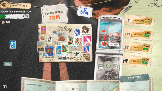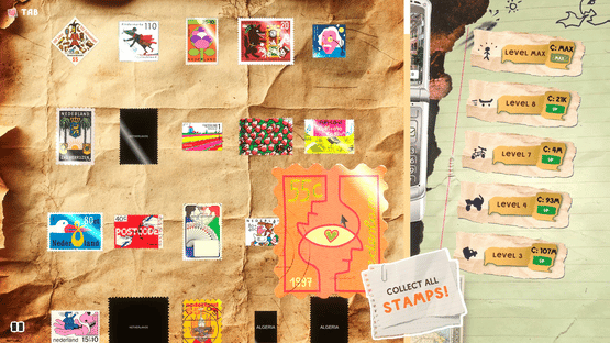 Lost Letter is an incremental idle game where you explore countries, collect more than 500 unique stamps, and upgrade vehicles to find a mysterious person. Experience relaxing gameplay with randomized targets, resource management, and a charming collage-inspired art style.