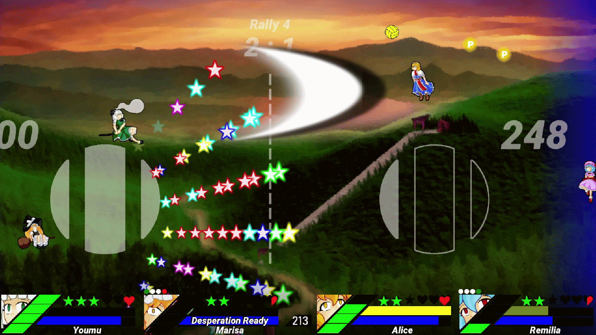 A volleyball game with a twist: shoot bullets while dodging them. Play as one of your favorite Touhou characters in a hybrid of sports and shoot-em-up action.