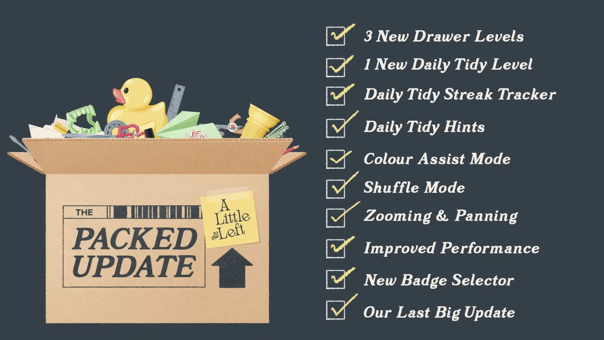 A Little to the Left wraps up with the free, final Packed Update.