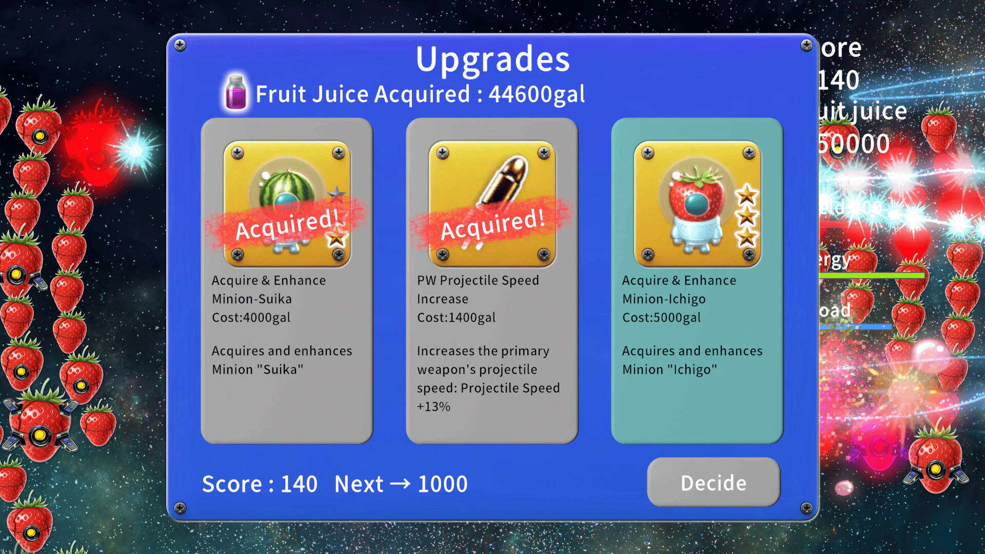 All-out 360-degree assault! A roguelite shooter where you pilot an sci-fi fighter to eliminate grotesque enemies fused with fruit and machinery, constantly upgrading your weaponry.