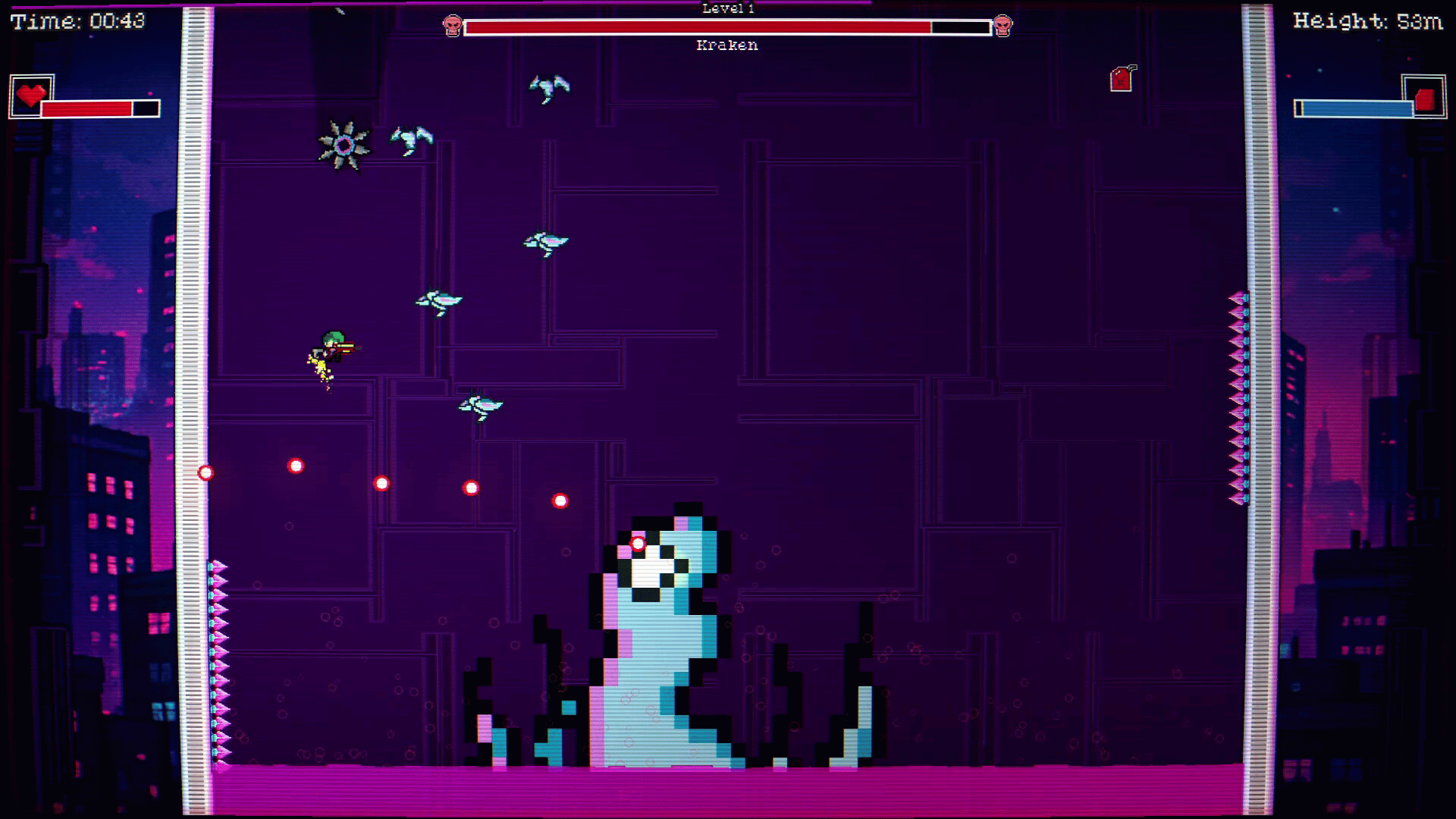 Ascend a deadly tower, blast through waves of enemies, dodge incoming fire, battle fierce bosses, and chase high scores in explosive pixel-art action as a jetpack soldier.