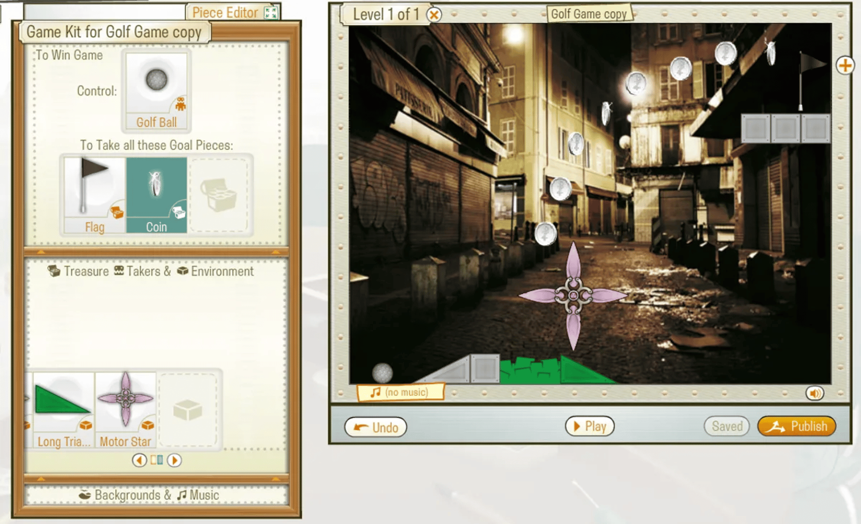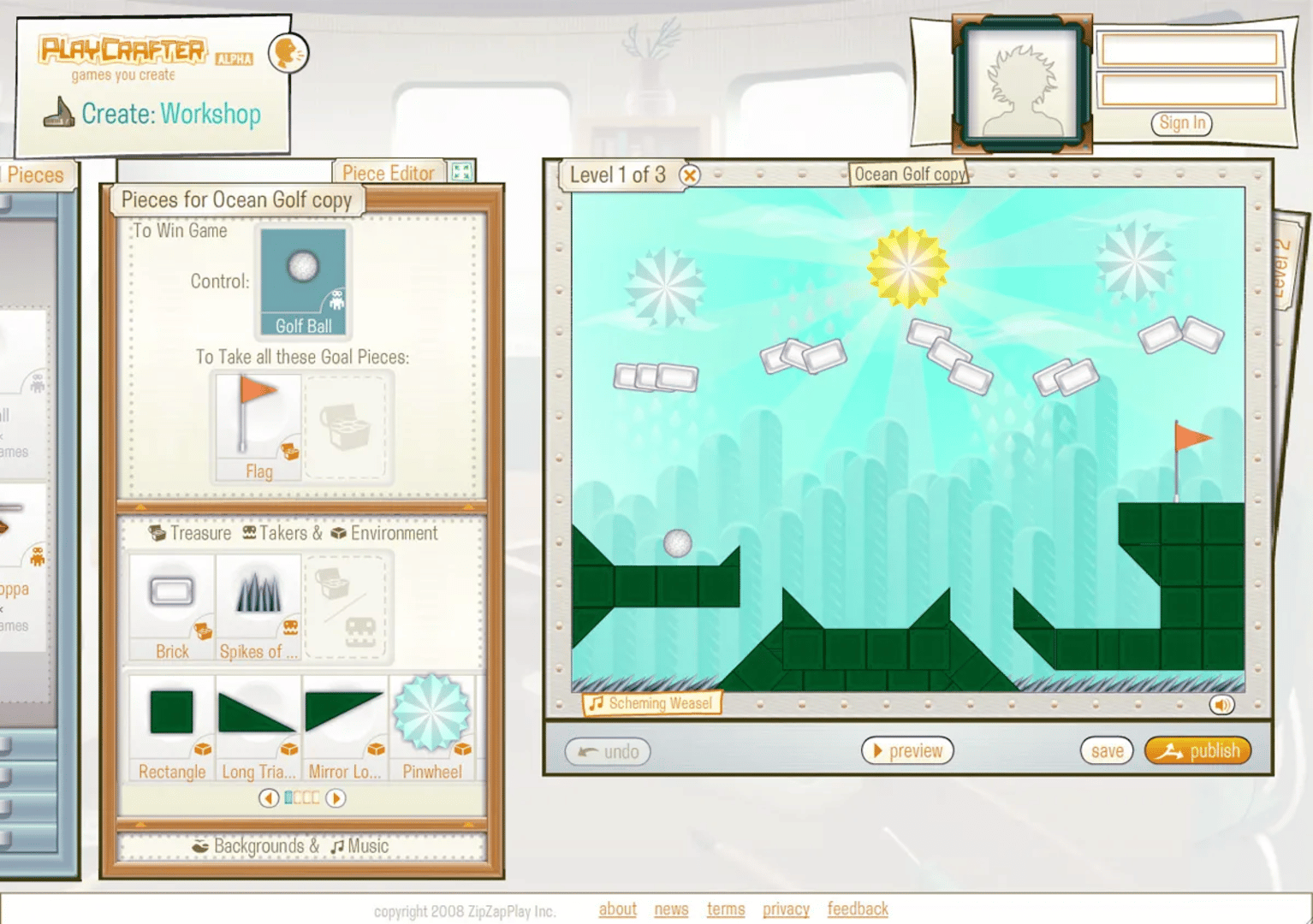 PlayCrafter was a Flash MMO where players could create Flash games using a variety of customizable pieces, share their creations with the community, and play games made by others. Development was funded through PlayCrafter Premium, which enhanced editor capabilities, and Pips, which could be used to purchase unique pieces.