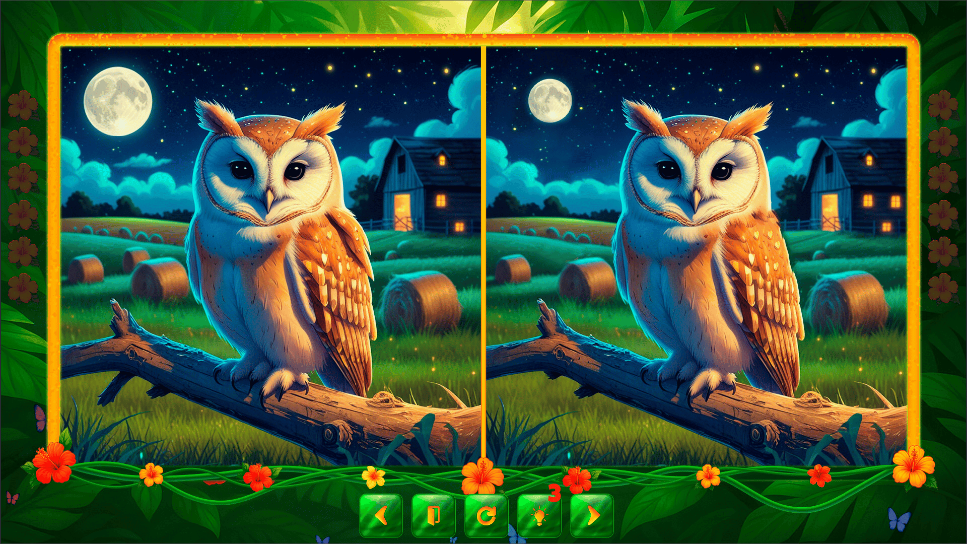 Find the Differences — A Fun Adventure in the World of Birds!Embark on a colorful journey through 70 levels where all sorts of birds await you: vibrant parrots, exotic birds on roller skates! Some are just chilling on branches, while others surprise with their activity and character.