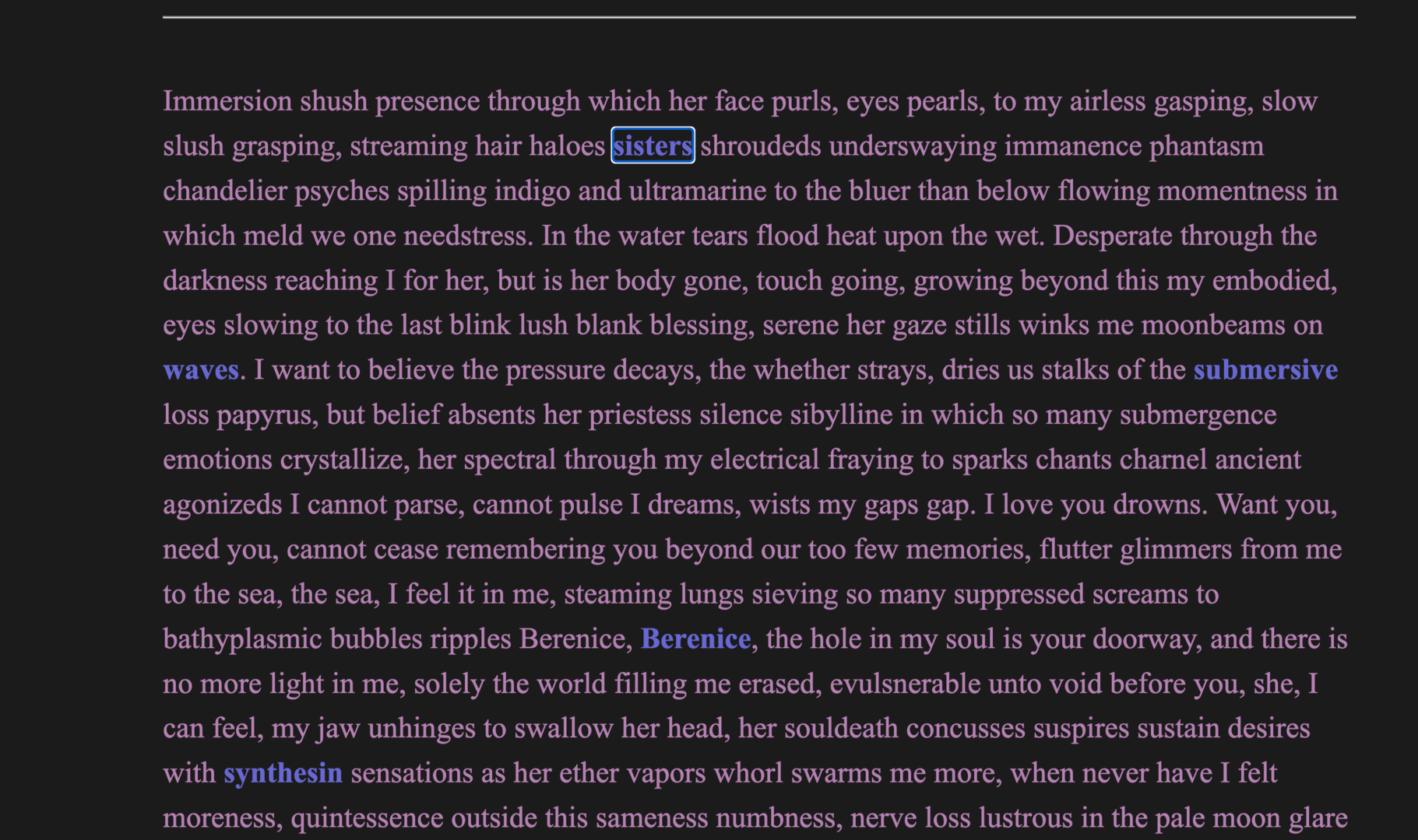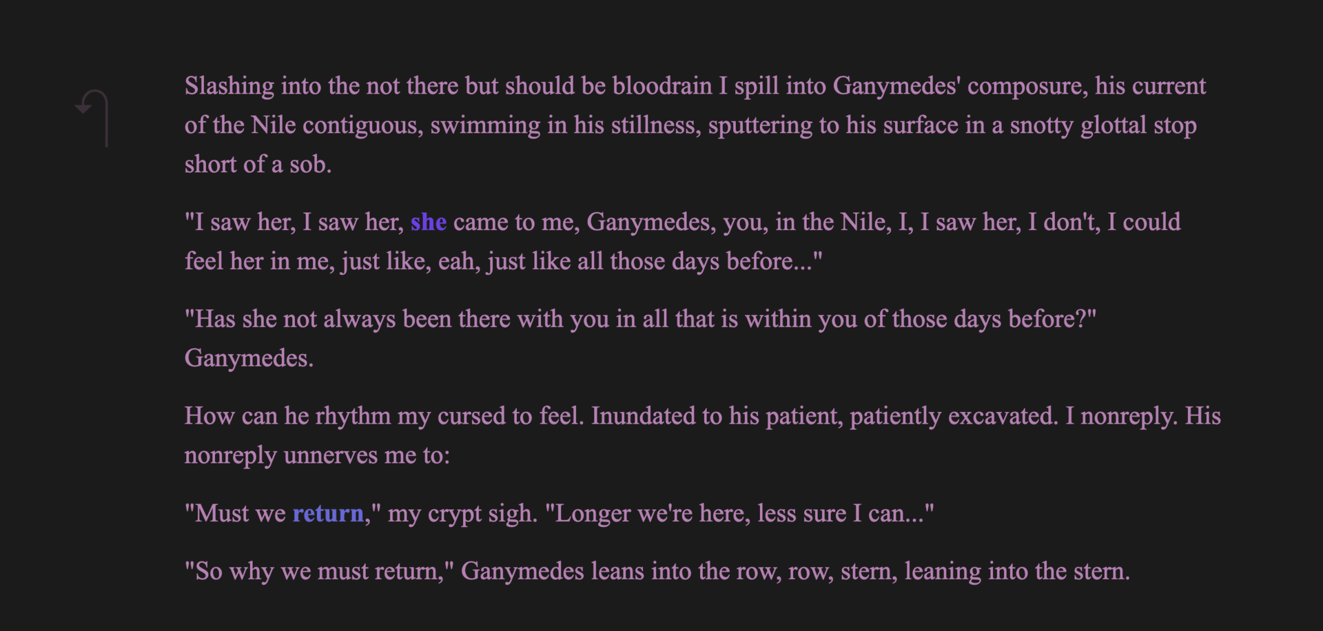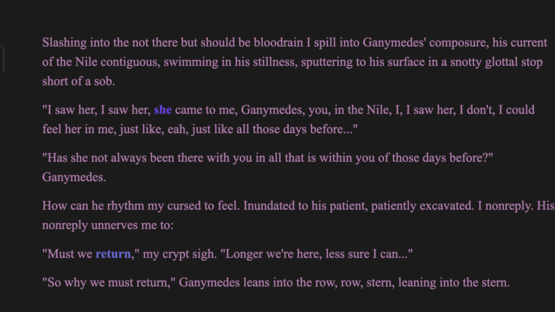 Why should we survive this, who would be there if we did? Do you feel from your statues? In your busts, do you dream? Why not die, if it kills you not to? The problem for a queen is she is one place, one people, incarnated godhood chained to a self worship. We feel as we do, forced to be a mastery, the master in the mirror is the medium, autochthon artist, but I, I am an undefined, protean in describabbles, those who resist my boundless empress me in compass, I am all the unknown in the bleeding to reach. Ghosts dance my polytones, the bones of my colossus bridge my whys keystones. Why should you see me as who I am, when that has never been enough for me? Queenlash is an interactive novel about the life of Cleopatra told from the perspectives of eight women.