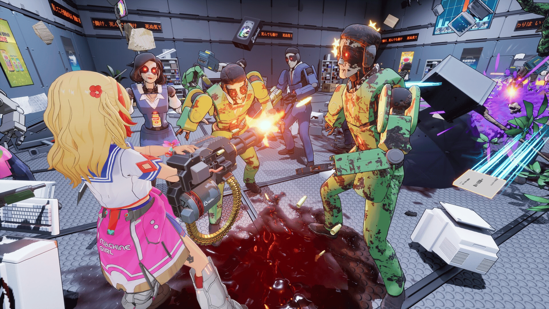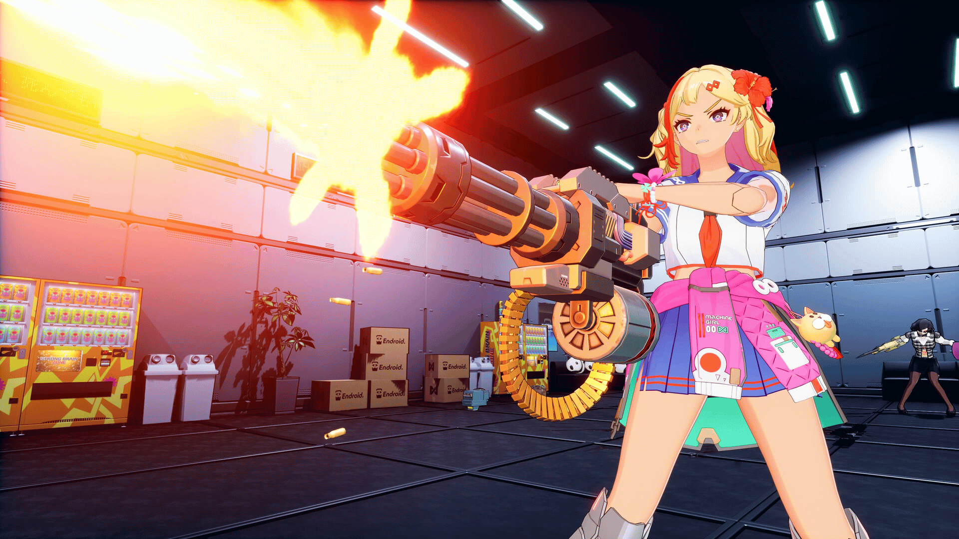 In the year 2089, the United Federation of Japan is an industrial powerhouse, while also being one of the world’s leading countries in overtime work. In this sickening future, the economy is booming and working 24 hours a day is considered virtuous. The core of this country’s industry, economy, and social system are controlled by a single giant corporation. The rampage of a fully mechanized schoolgirl—a fully armed cyborg heroine storms into a giant corporation and unleashes a relentless barrage of gunfire and sword action in this exhilarating cyborg schoolgirl action adventure. The feeling of immorality is irresistible when you break into an office and wreak havoc.
